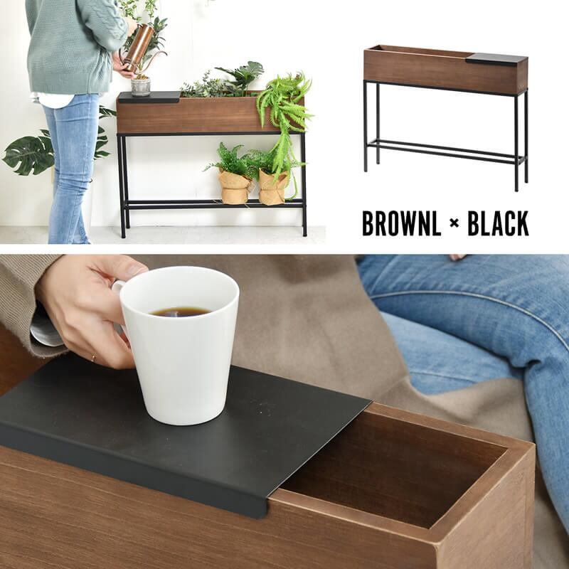 サイドテーブル 80cm幅 プランター台 スライドトレー付き プランター台サイドテーブル ボックス棚 ボックス収納 ソファサイドテーブル ソファ横 ベッドサイドテーブル ベッド横 ナイトテーブル 机 おすすめ おしゃれ 北欧 ブラウン プランタースタンド 収納付きテーブル 収納ラック 収納棚付きサイドテーブル ブラウン ナチュラル 茶色