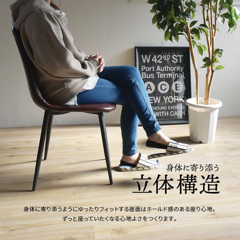 脚はブラックのアイアンで引き締まった印象を与え、リビングダイニング問わずお使いいただけるチェアです。