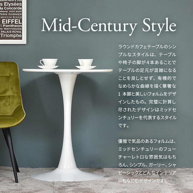一本脚の曲線が美しいフォルムとシンプルなホワイトが、カフェ風からモダンなど様々なスタイルに合う、流行りの韓国インテリア風なラウンドテーブルです。