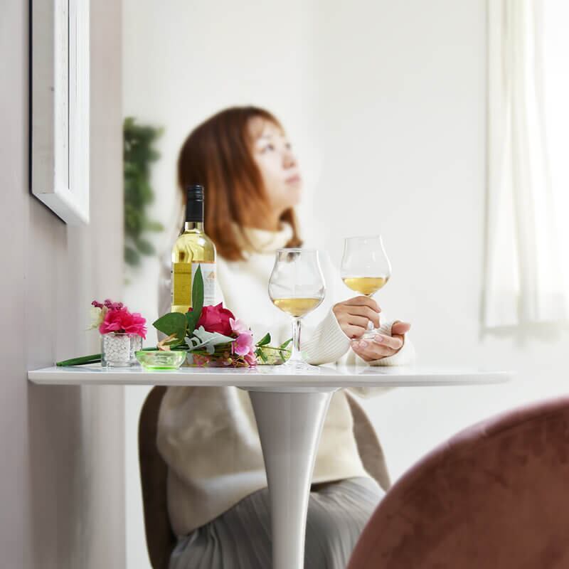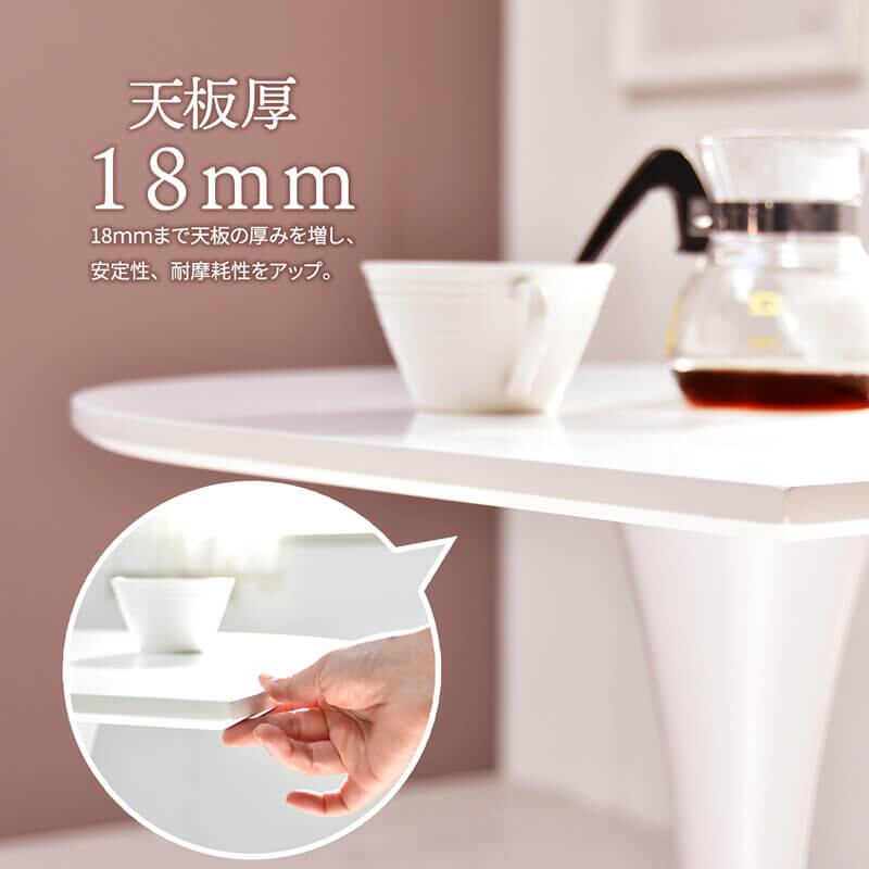 丸みのある優しいデザインのテーブルは、コーヒーテーブルとしての使用や、観葉植物を置いたり、ドレッサーとして使用したりなど、設置場所を問わず、いろんなシーンでの使用が可能です。