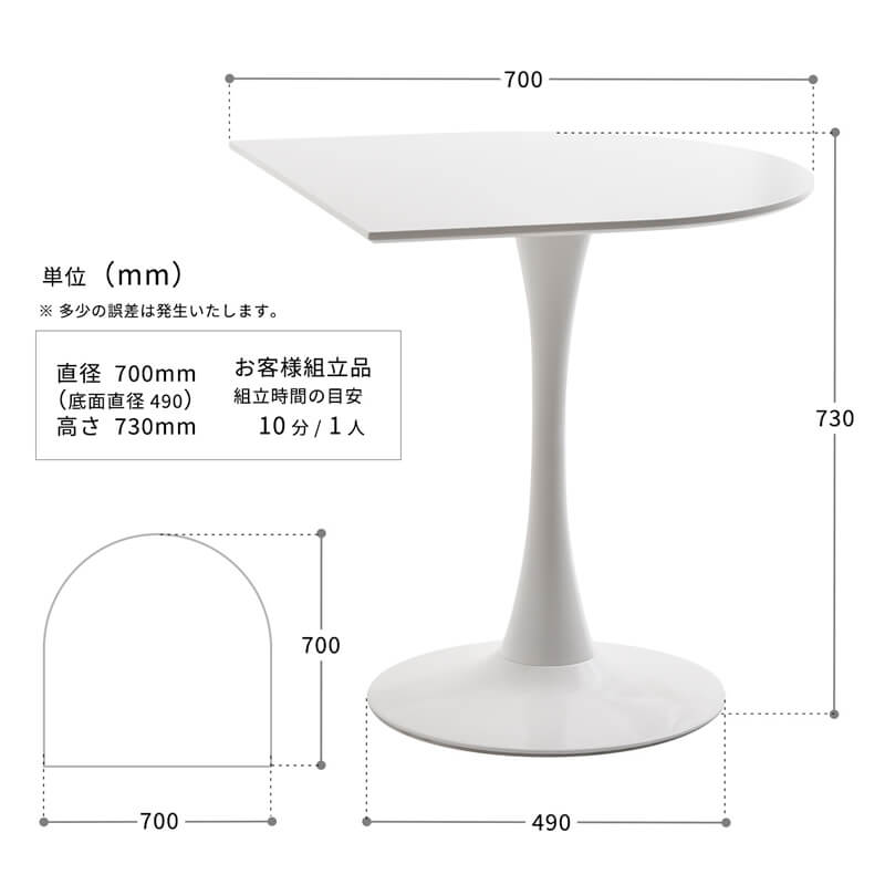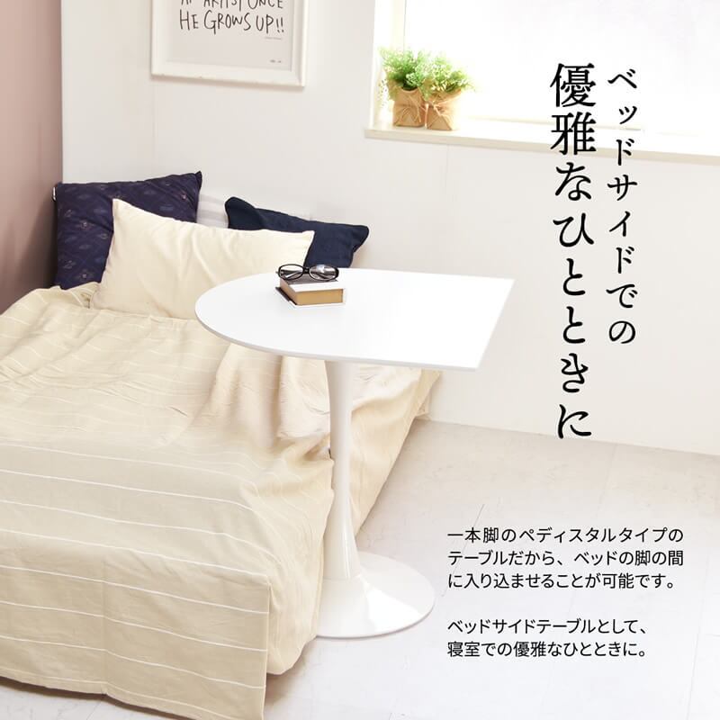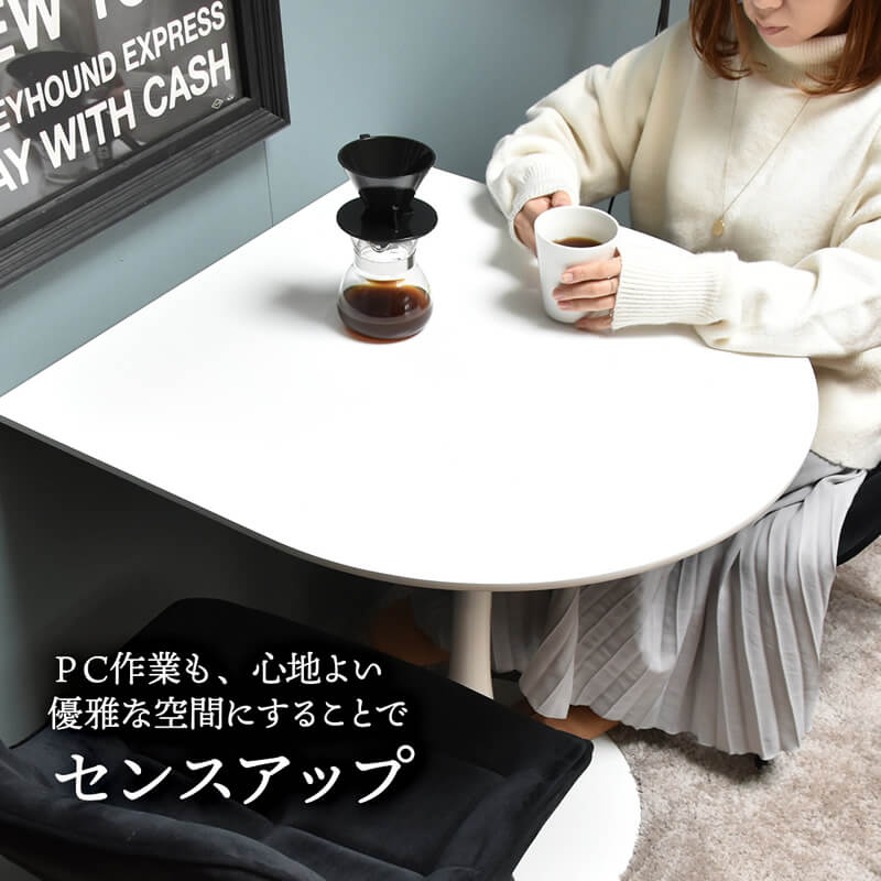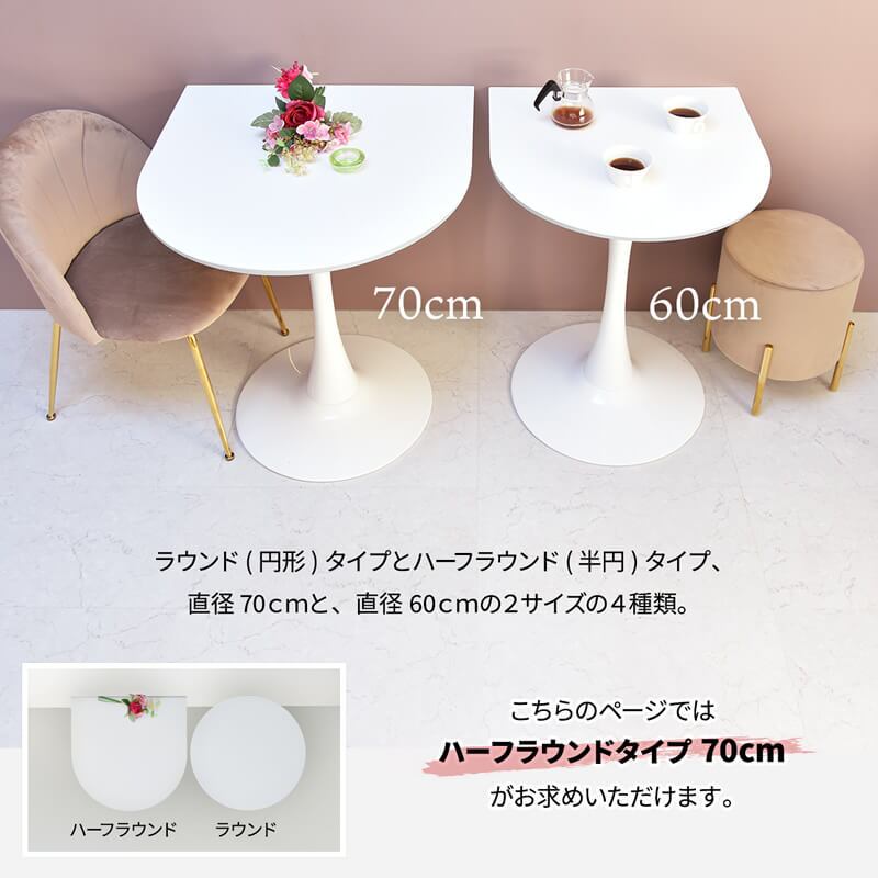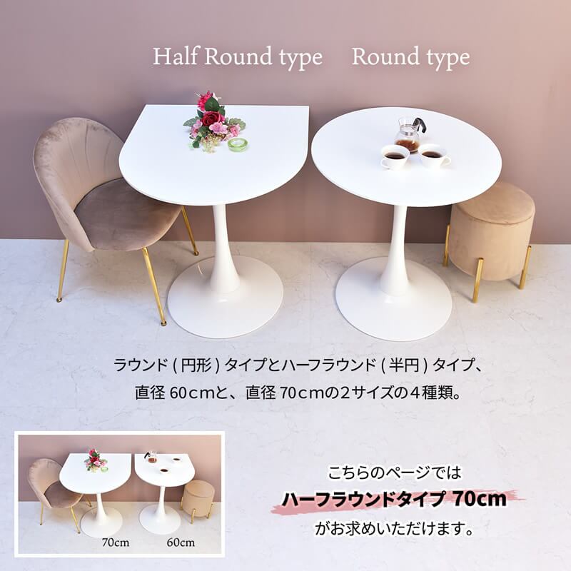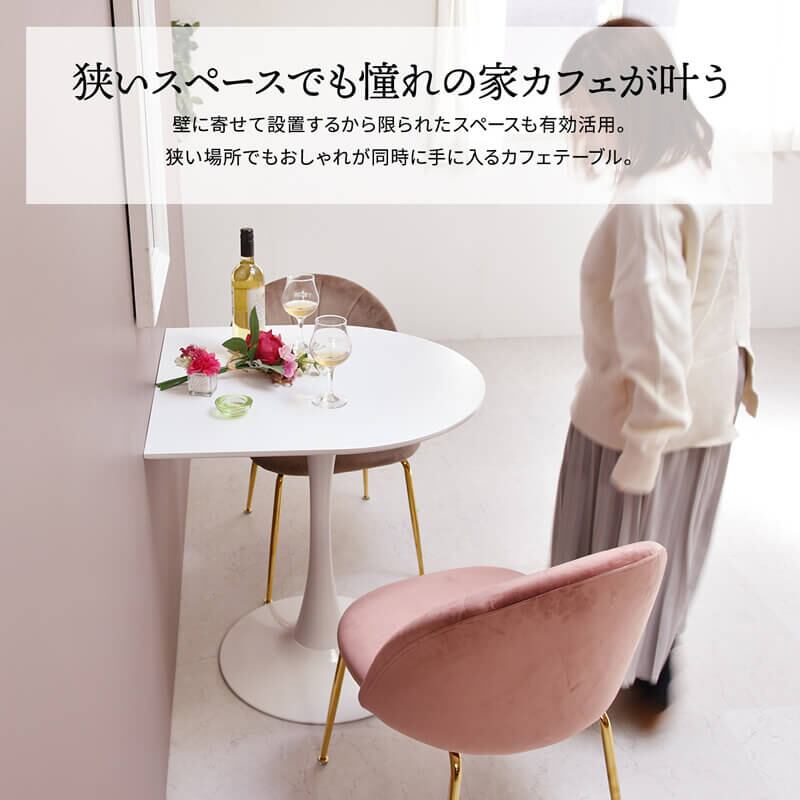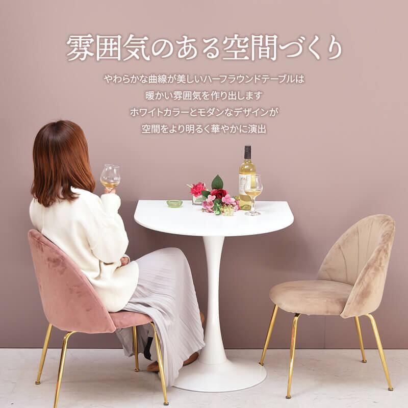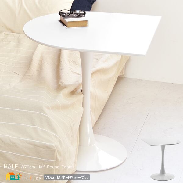 シンプル且つ洗練されたデザインで、スペースを有効活用できる70cm幅の半円型テーブルです。