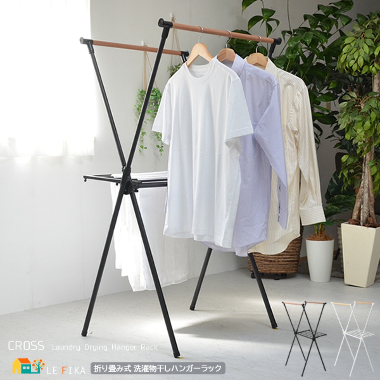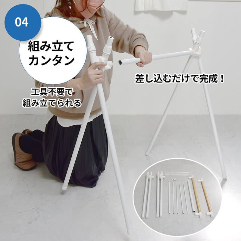 クロス型のコンパクトな洗濯物干しラックです。