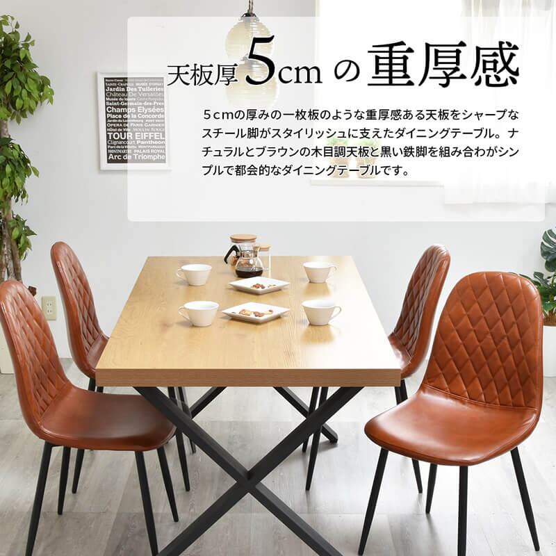 ダイニングテーブル 150cm幅 4人用ダイニングテーブル 食卓 食卓テーブル 机 おすすめ おしゃれ 北欧 ダイニング机 テーブル 食卓用テーブル 食卓用机 ダイニング家具 4人用テーブル スチール脚 ブラウン ナチュラル ライトブラウン 茶色系 ベージュ系 ホワイト脚 ブラック脚 書斎デスク ワークデスク クロス脚 150cm幅デスク