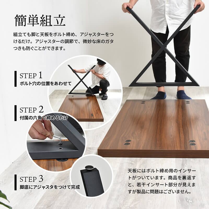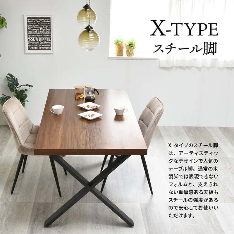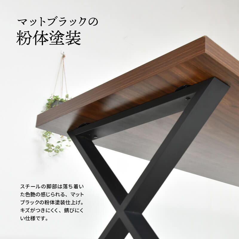 アーティスティックなデザインで人気のクロスタイプのテーブル脚は、気品のある粉体塗装のシャープなフォルムが、様々なスタイルの空間に映えるダイニングテーブルに仕上がっています。