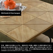 三角形にカットした古材風のパイン材をジオメトリックに並べた、質感の高い天板、棚板に、無骨でシンプルなアイアンパイプを組み合わせたシリーズです。