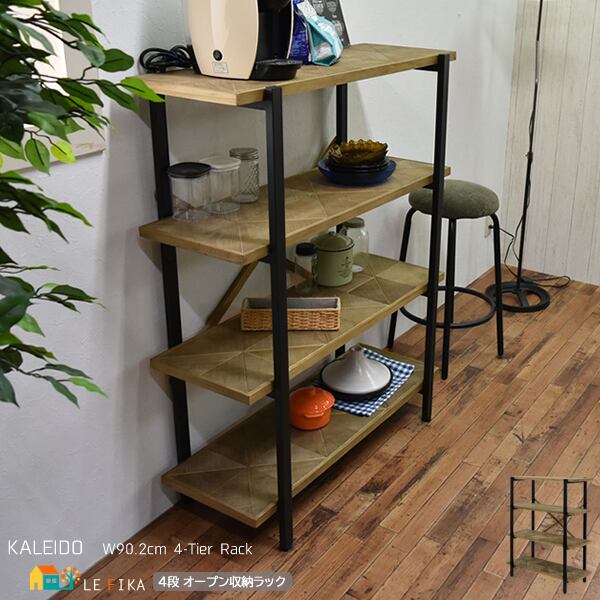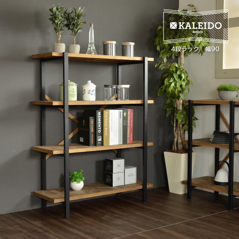 4段ラック 90.2cm幅 オープン 収納 木製 棚 本棚 シェルフ 間仕切り ディスプレイ コンパクト スリム 省スペース 一人暮らし リビング おしゃれ デザイン 収納 ラック ナチュラル 天然木 アイアン 男前 片付け 暮らし 家具 インテリア 四段収納棚 4段収納ラック マルチラック