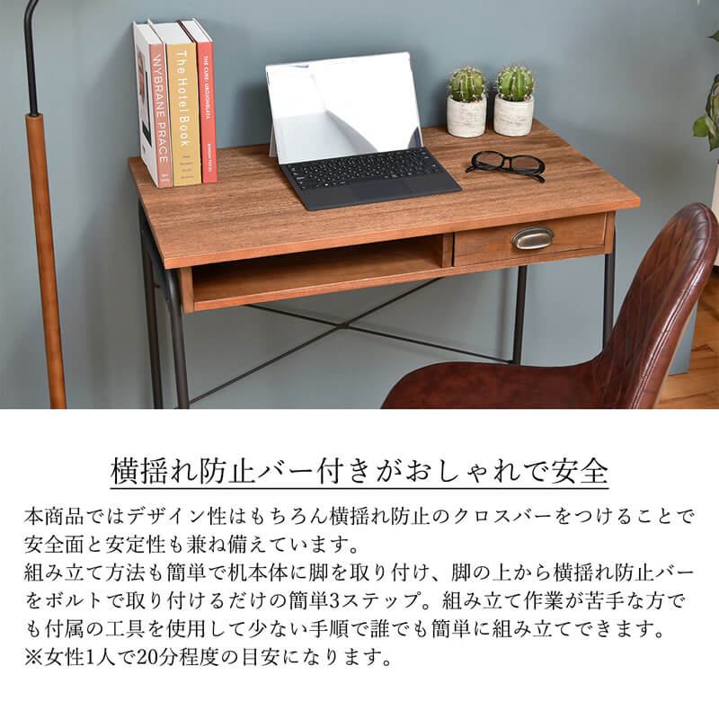 デスク パソコンデスク 収納付きデスク 86cm幅 おすすめ おしゃれ 北欧 PCデスク ワークデスク 作業台 書斎デスク 机 つくえ オフィス家具 引き出し収納 アンティーク加工 モダン レトロ調