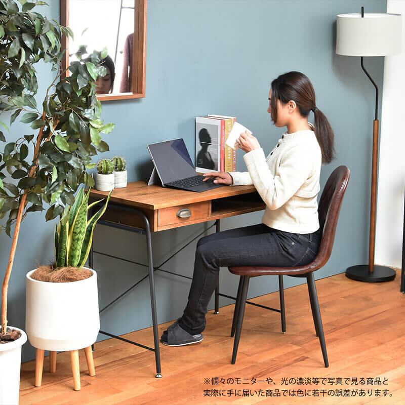 アンティーク調に加工された天然の桐材と、スチールパイプの組み合わせが、絶妙なバランスの収納付きデスクです。