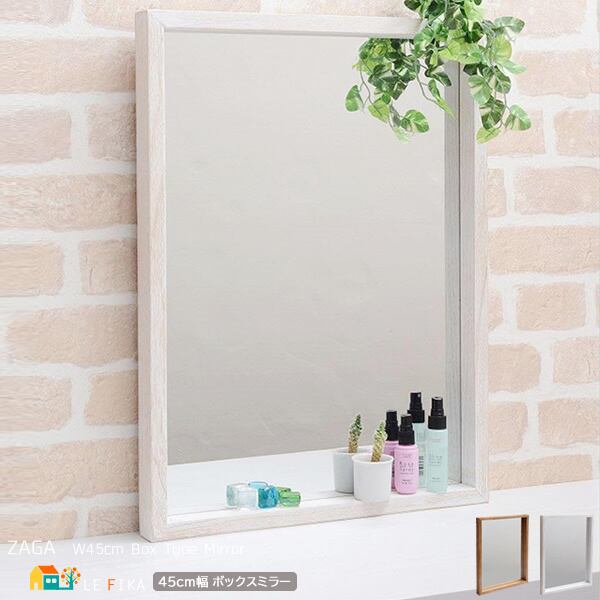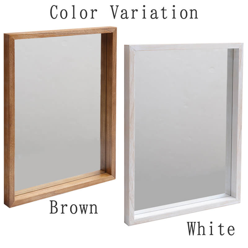 ボックスミラー 壁掛け鏡 壁掛けミラー おすすめ おしゃれ 北欧 茶色 白 ブラウン ホワイト アンティーク調 45cm幅 木製フレーム 天然木 桐材 レトロ調 アンティーク調 鏡 ミラー