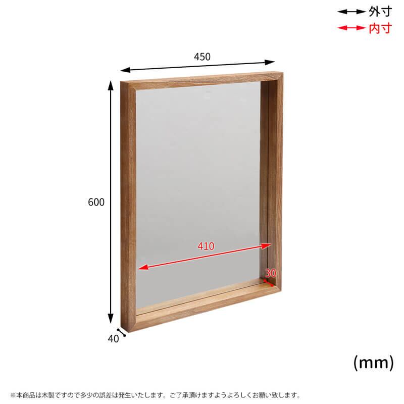 天然の桐材を使用し、一つ一つ丁寧に表面を磨き、アンティークな風合いに仕上げた45cm幅のボックスミラーです。
