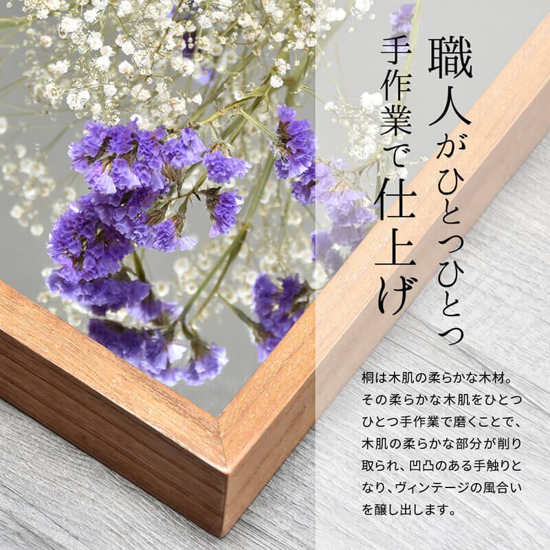 フレームは無垢の桐材に凹凸のある表面に仕上げる事で、アンティーク調に仕上げました。
