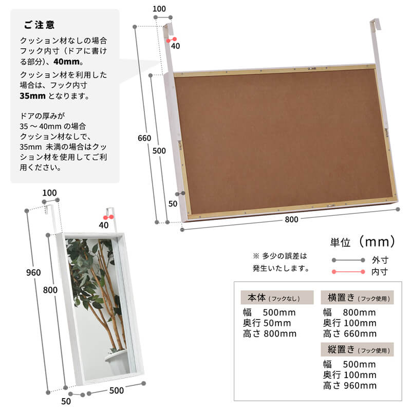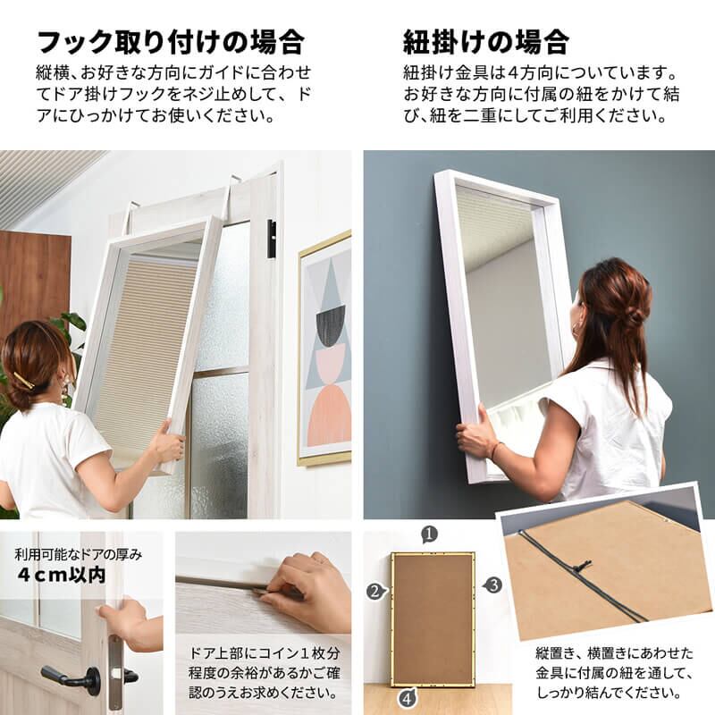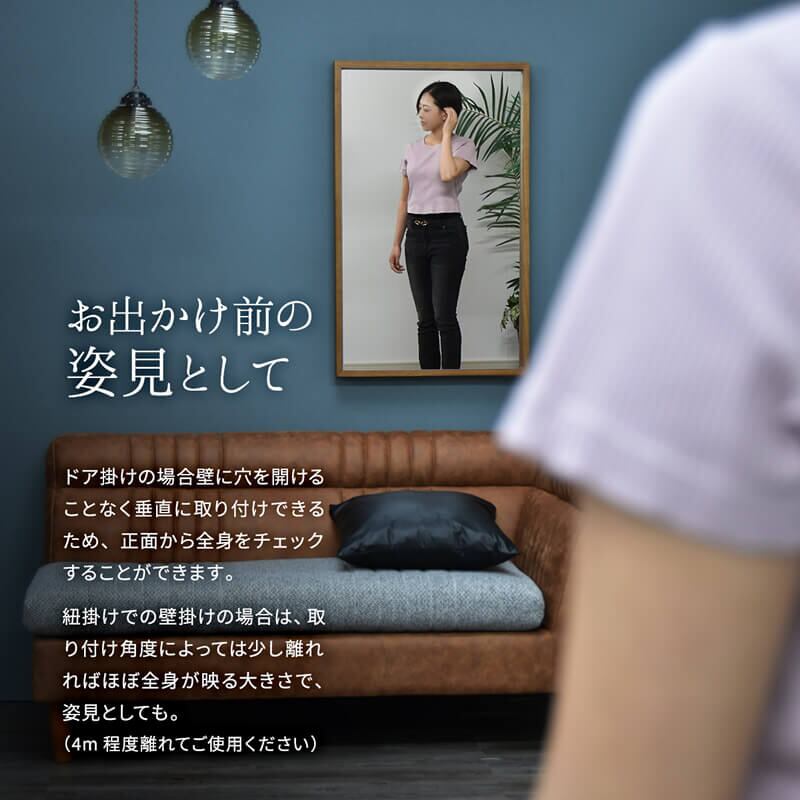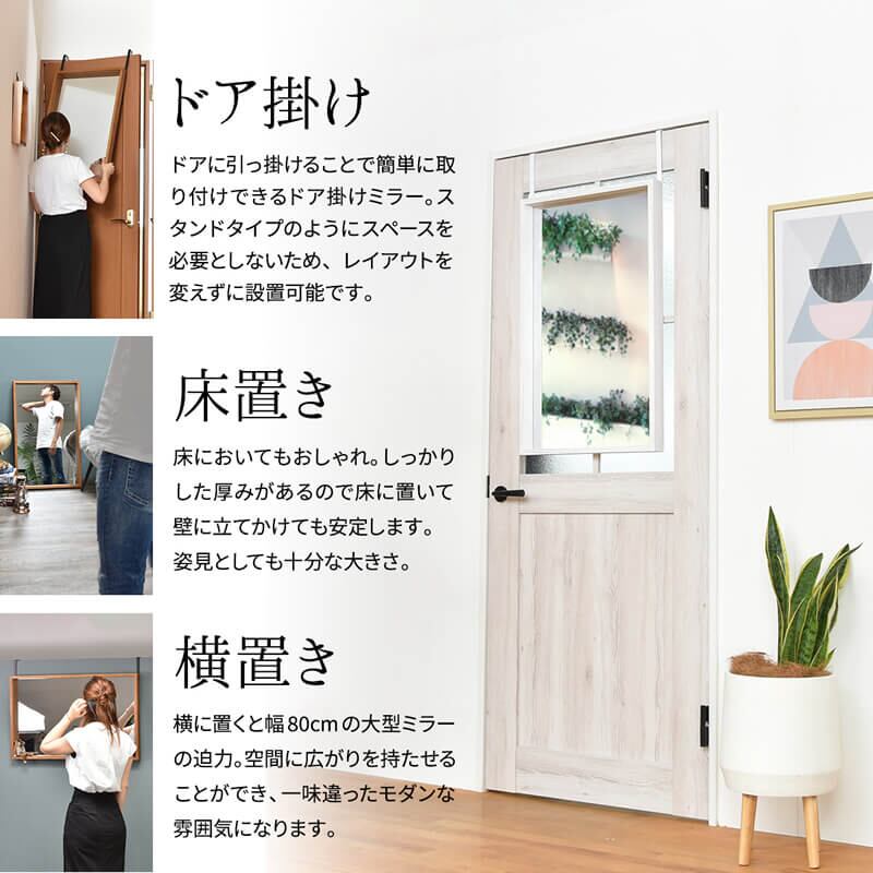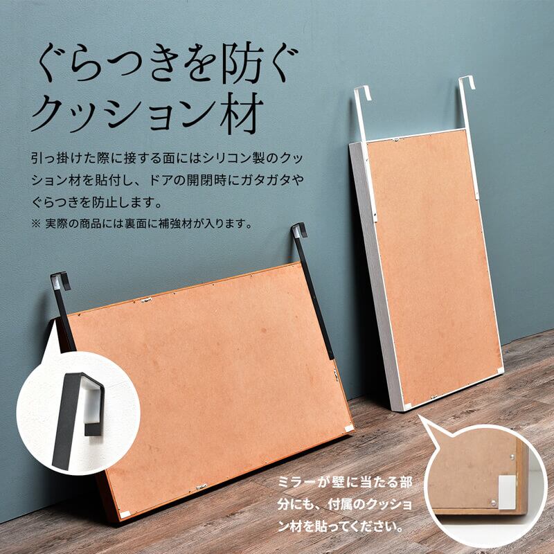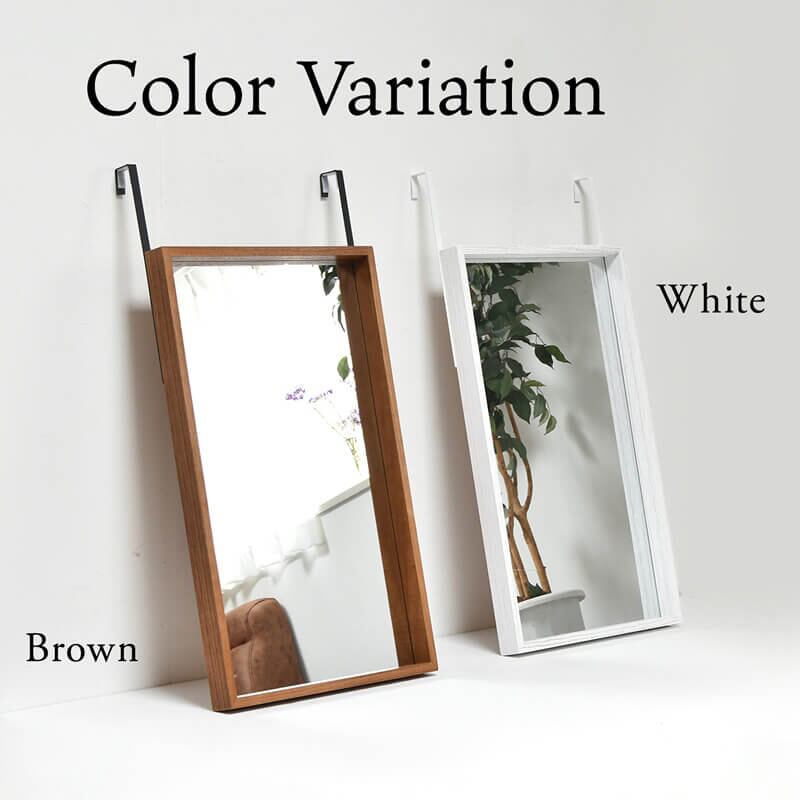 ドア掛けミラー 50cm幅 ブラウン ホワイト 茶色 白 壁掛けミラー 吊り鏡 吊りミラー 壁掛け鏡 ドア掛け鏡 飾り棚 幅50cm 奥行5cm 高さ80cm おすすめ おしゃれ 北欧 モダン スタイリッシュ 木製フレーム 天然木使用 姿見 飛散防止加工 立て掛け鏡 引っ掛け式ミラー ドア掛け鏡