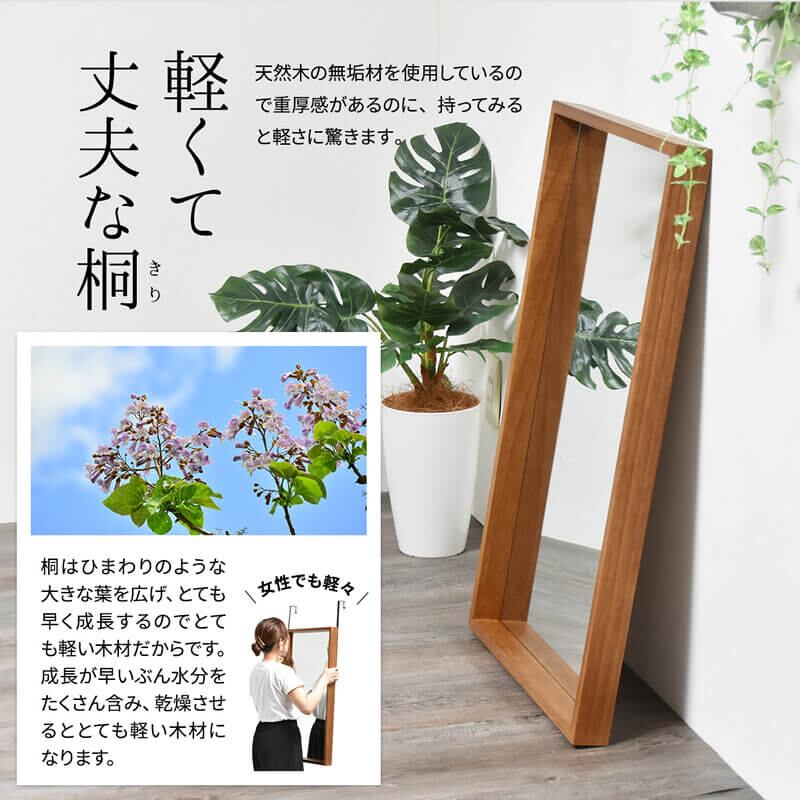 天然木(桐材)をフレームに使ったドア掛け、壁掛け両用の50cm幅のミラーです。