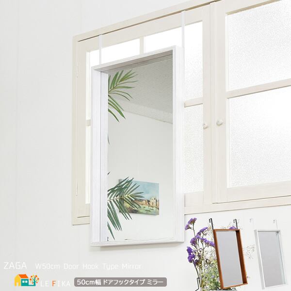 壁掛けミラー 50cm幅 吊りミラー ドアミラー 立て掛けミラー 鏡 壁掛け鏡 引っ掛け式ミラー おすすめ おしゃれ 北欧 モダン スタイリッシュ ブラウン ホワイト 白系 茶色系 アンティーク調 ドア引っ掛け式 天然木 木製フレーム フック式ミラー