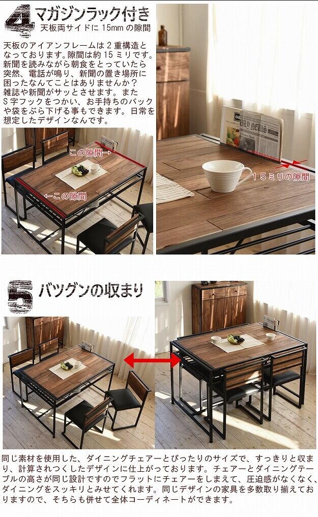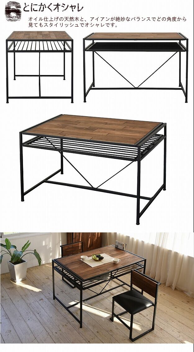 天板下にアイアン収納棚が付いた4人用のダイニングテーブルです。