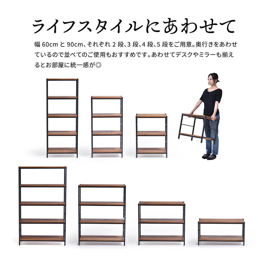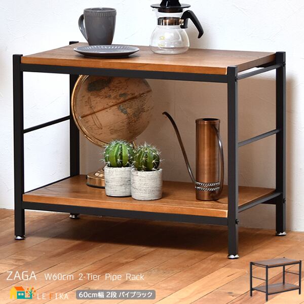2段ラック 2段シェルフ オープンラック オープンシェルフ 2段棚 60cm幅 ブラウン 天然木 収納ラック 収納シェルフ オープン棚 2段収納ラック 2段収納シェルフ 2段収納棚 おすすめ おしゃれ 北欧 モダン ヴィンテージ調 レトロ調 ヴィンテージ風 収納棚