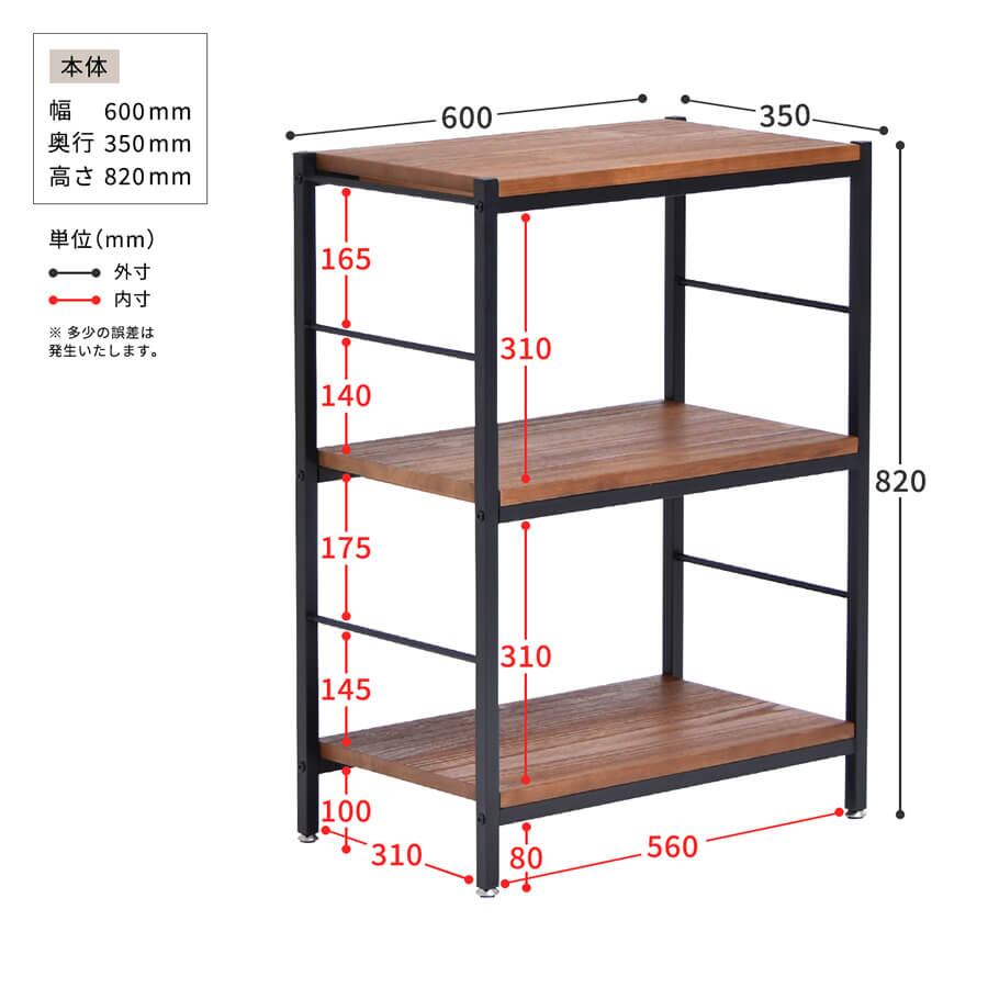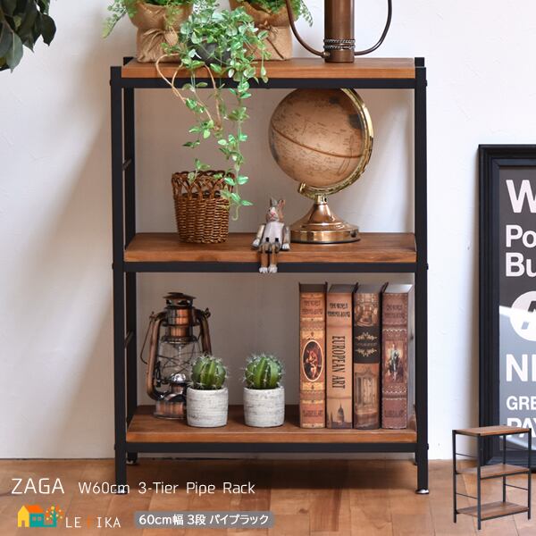 3段ラック 3段シェルフ オープンラック オープンシェルフ 3段棚 60cm幅 ブラウン 天然木 収納ラック 収納シェルフ オープン棚 3段収納ラック 3段収納シェルフ 3段収納棚 おすすめ おしゃれ 北欧 モダン ヴィンテージ調 レトロ調 ヴィンテージ風 収納棚