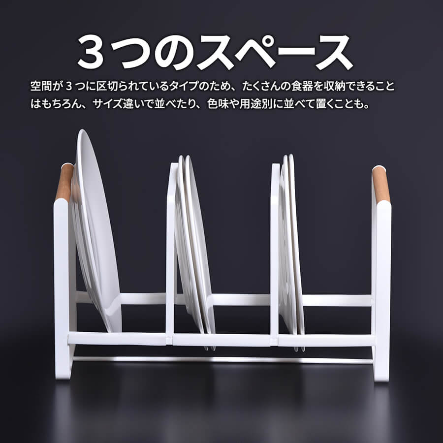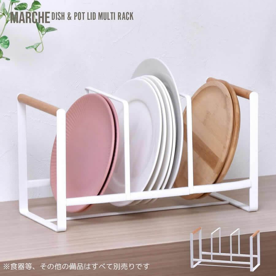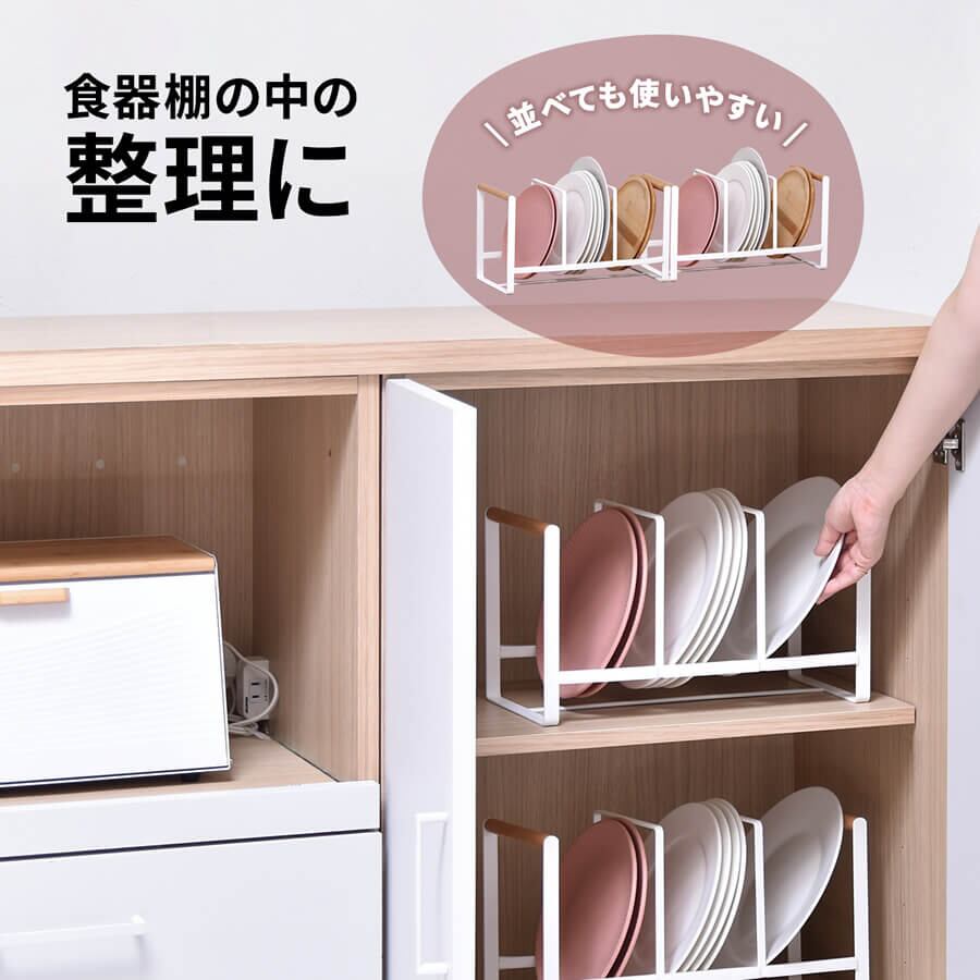 食器棚の中で増える、かさばる、取り出しにくいお皿をスッキリ収納でき、シンク下に置いてお鍋のフタやなどを収納するのにも便利な、キッチン用品マルチ収納ラックです。