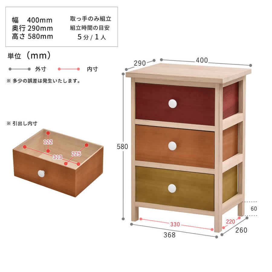 ■商品内容:3段チェスト×1台