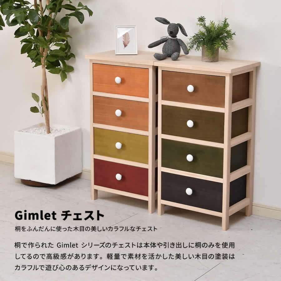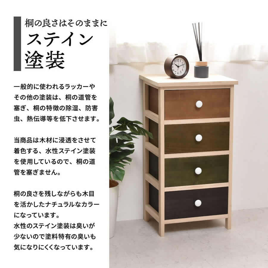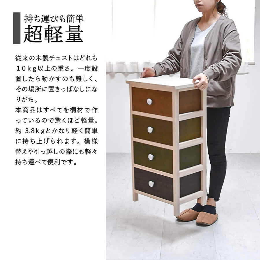 軽量で素材感を生かした桐でできた4段チェストです。