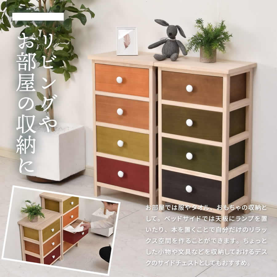 4段チェスト 40cm幅 引き出し4杯 箪笥 タンス 洋服タンス 衣類タンス タオル収納 衣類収納 タンス オレンジ ダークグリーン おすすめ おしゃれ 北欧 モダン 収納 衣類収納チェスト 桐 天然木使用 収納チェスト 4段収納 簡単組立 たんす チェスト 4段棚 リビング収納 コンパクト 省スペース 四段チェスト