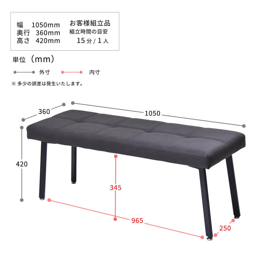 ■商品サイズ(約):幅105cm、奥行36cm、高さ42cm