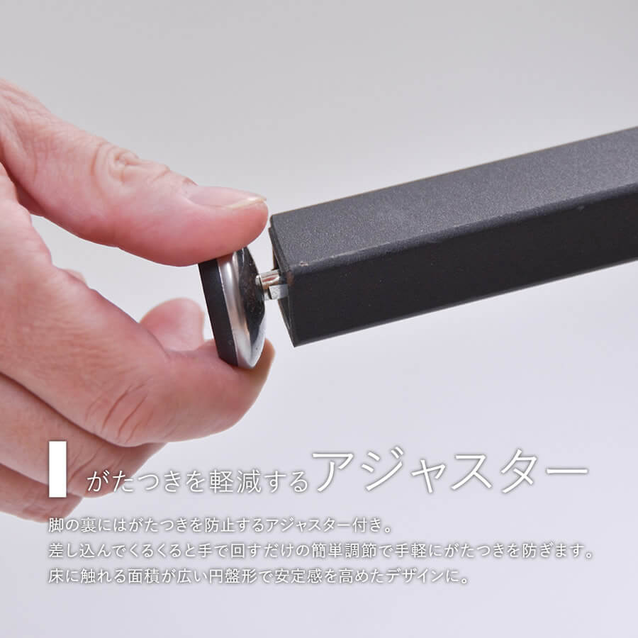 脚元はガタつきを軽減するアジャスターになっており、手で回すだけで簡単に調節が可能です。