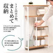面倒なペーパーホルダーの取り付け作業もなく、トイレ周りの物をスッキリと収納できるサニタリーオープンラックです。