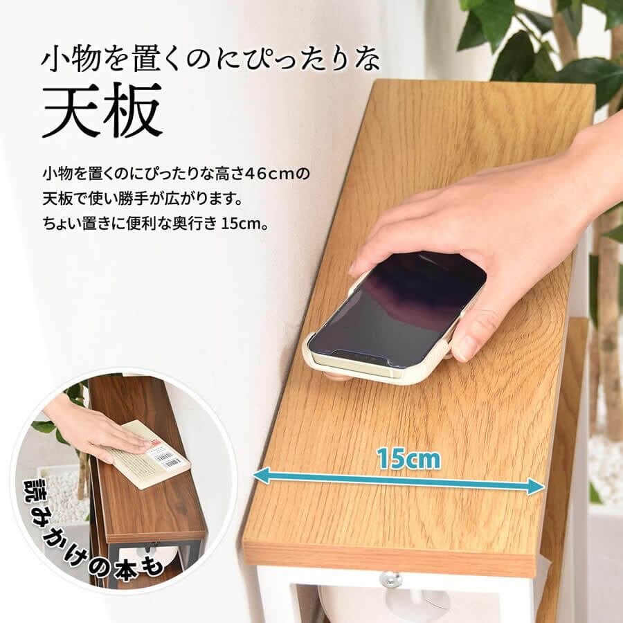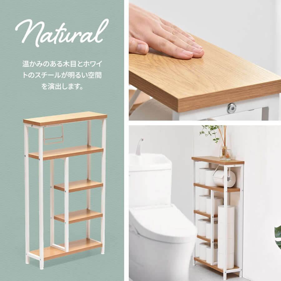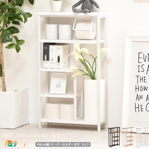 収納ラック 46cm幅 ブラウン ナチュラル ホワイト トイレットペーパーホルダー付き トイレ収納ラック リビング収納ラック 幅46cm 奥行15cm 高さ80cm おすすめ おしゃれ 北欧 モダン 収納棚 収納シェルフ 玄関収納ラック 玄関シェルフ トイレ収納棚 ペーパーホルダー付き