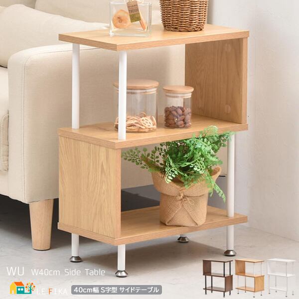 サイドテーブル 40cm幅 S字型テーブル サブテーブル おすすめ おしゃれ 北欧 モダン スタイリッシュ アジャスター付き リビング 寝室 ベッド横テーブル ソファ横テーブル ベッドサイドテーブル ラック 収納棚 収納ラック サイドラック テーブル 机 S型机