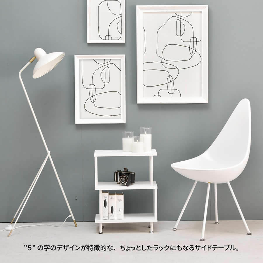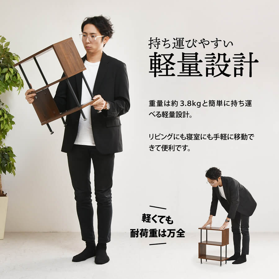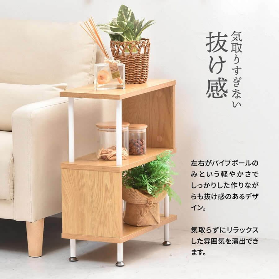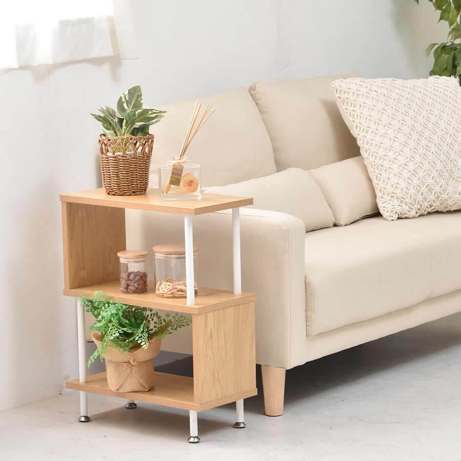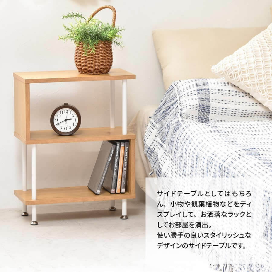 サイドテーブルとしての使用はもちろん、小物や観葉植物などをディスプレイするラックとしても使用可能なサイドテーブルです。