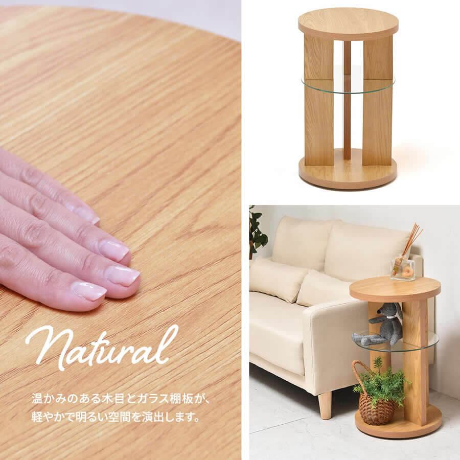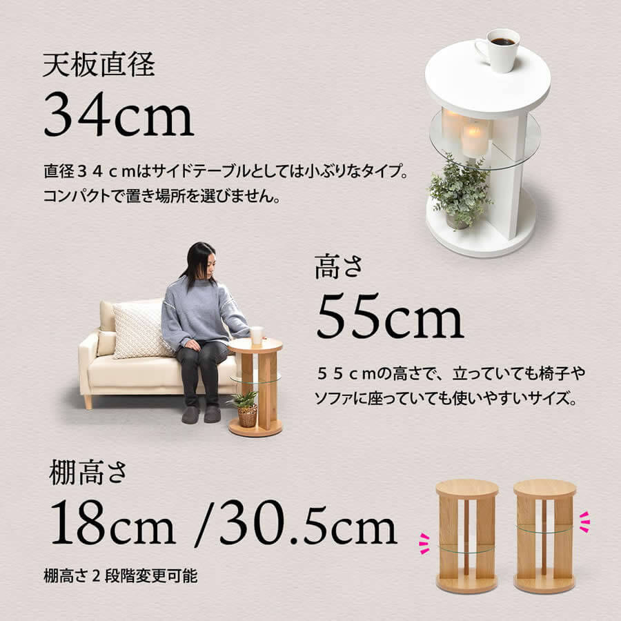 省スペースで使用できるので、お部屋をスッキリと見せることができる34cm幅の円型サイドテーブルです。