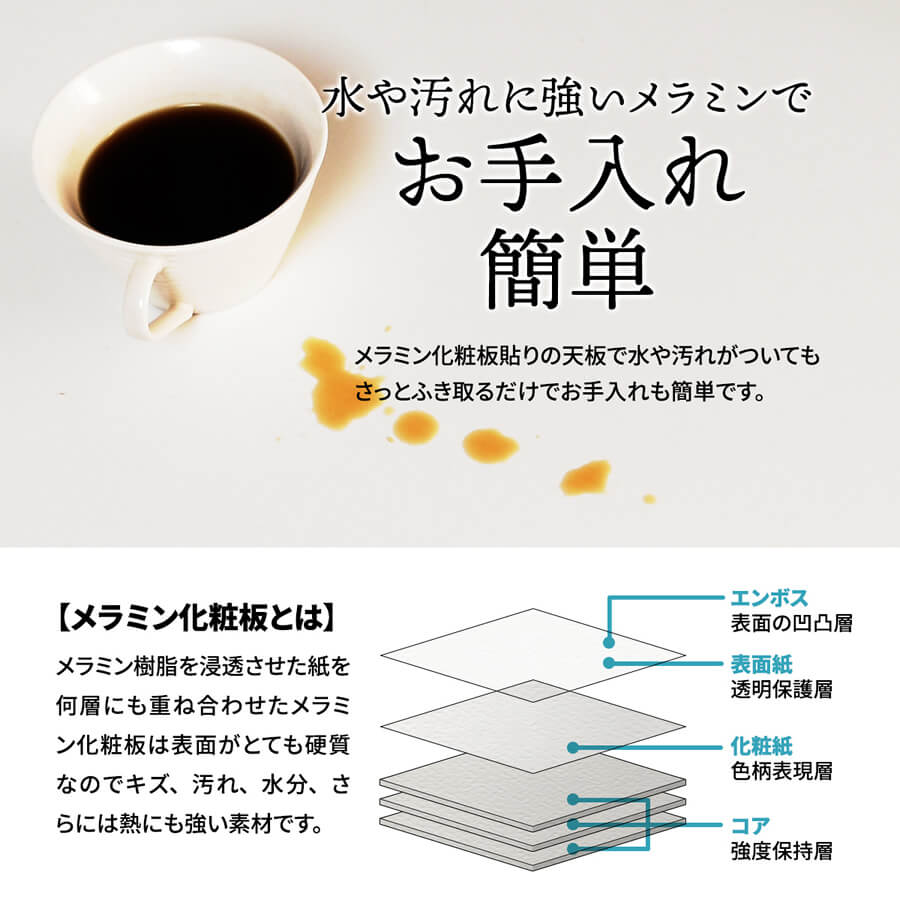 ・天板、支柱板、底板:中質繊維板(メラミン貼り)
