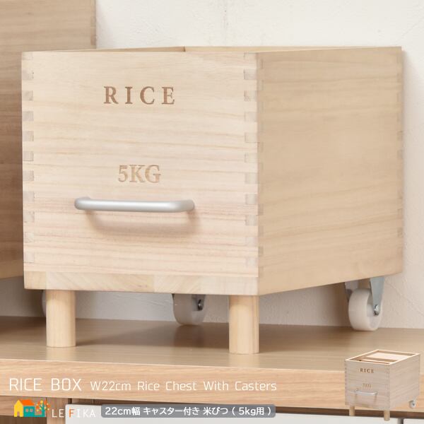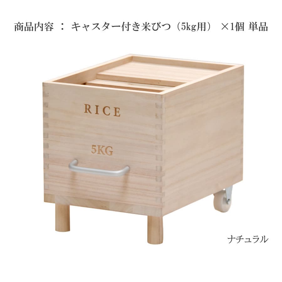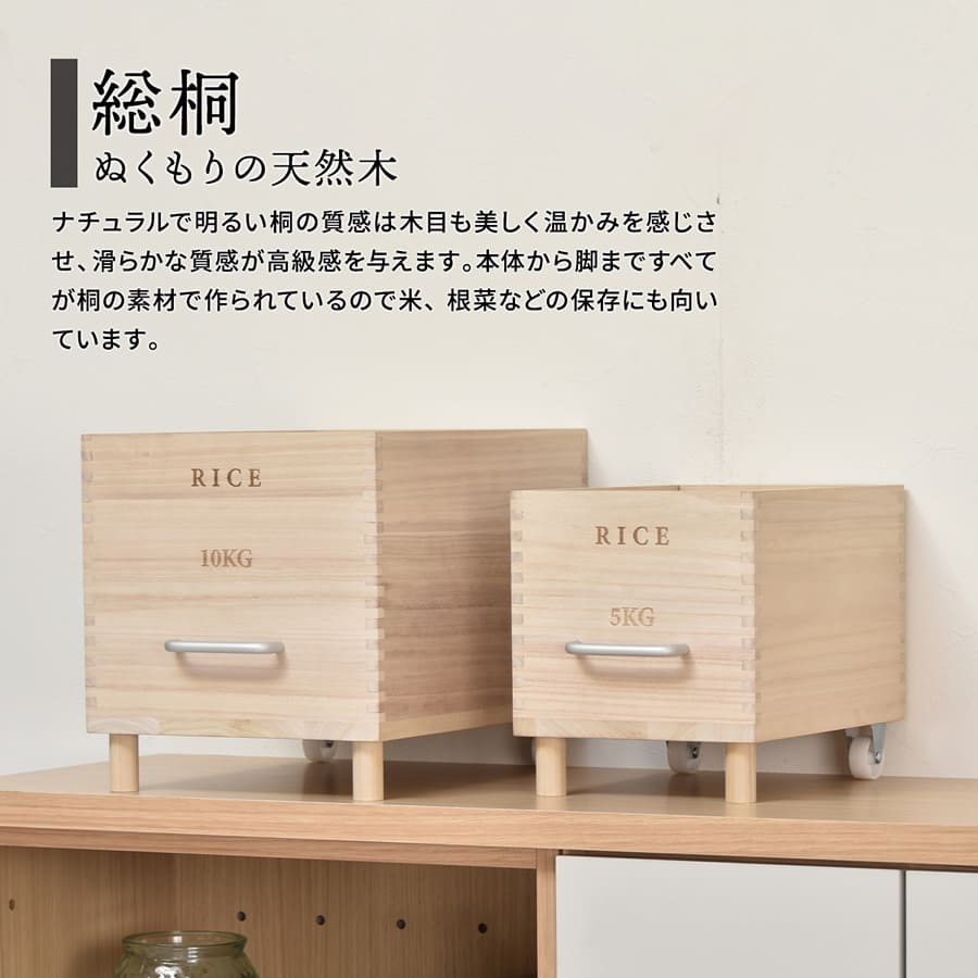 米びつ キャスター付き米びつ 容量5kg ライスボックス 米櫃 ライスチェスト 桐 天然木 ナチュラル 取っ手付き キッチン収納 お米の保存 調湿 桐の米びつ