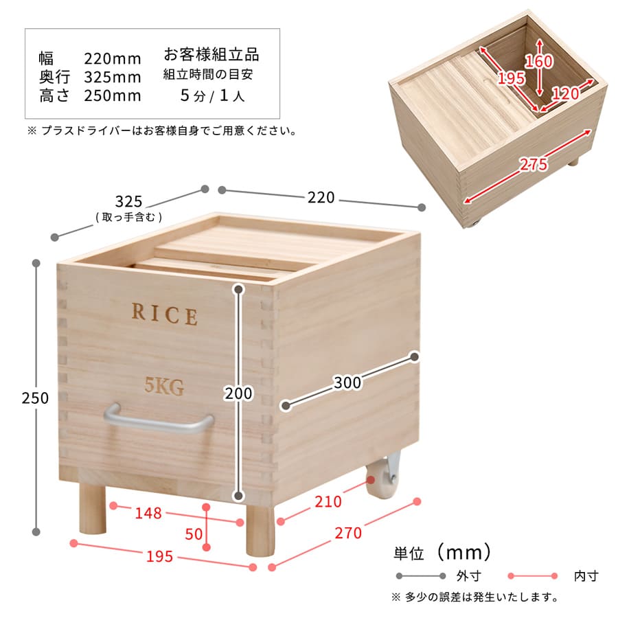 ■商品内容:キャスター付き米びつ(5kg用タイプ)×1個