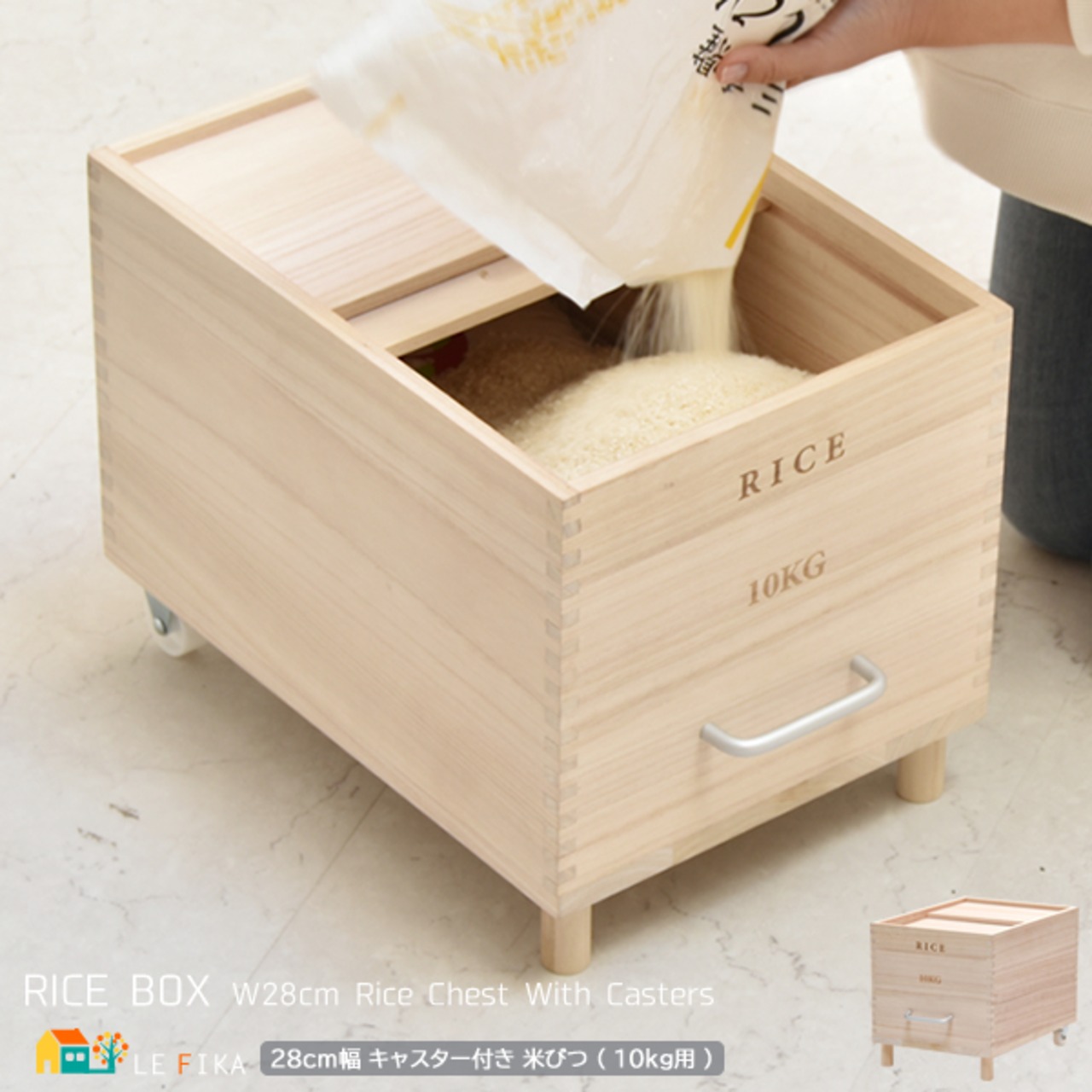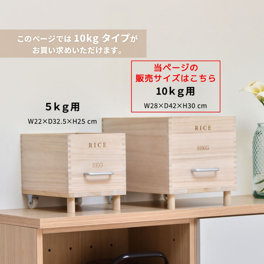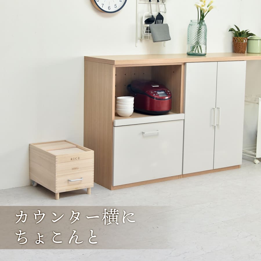 米びつ キャスター付き米びつ 容量10kg ライスボックス 米櫃 ライスチェスト 桐 天然木 ナチュラル 取っ手付き キッチン収納 お米の保存 調湿 桐の米びつ