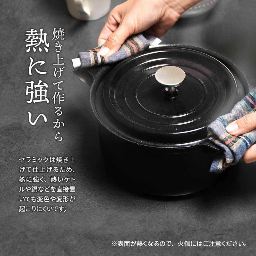 高温で焼き上げたセラミックなので熱にも強く、またキズにも強いダイニングテーブルです。