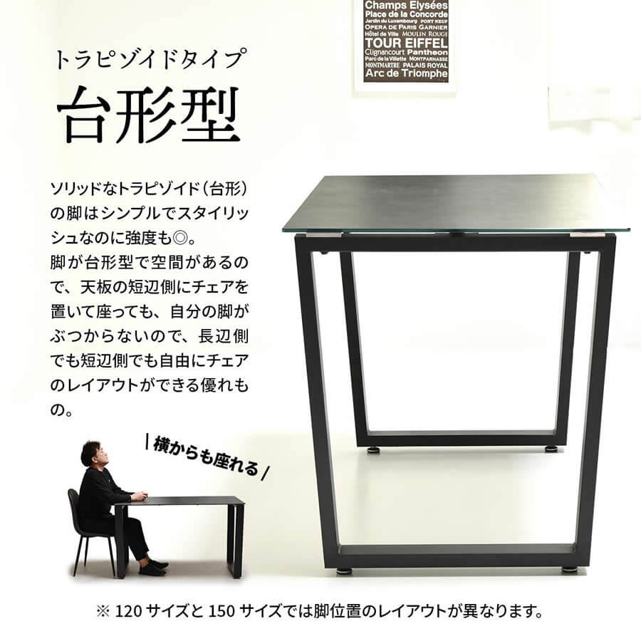 ダイニングテーブル 120cm幅 ダークグレー ライトグレー 食卓テーブル 作業台 作業テーブル 作業机 幅120cm 奥行70cm 高さ72.5cm おすすめ おしゃれ 北欧 モダン 天板セラミック 強化ガラス 丈夫 傷に強い 汚れに強い ダイニング机 スチール脚 台形型脚 テーブル デスク 机