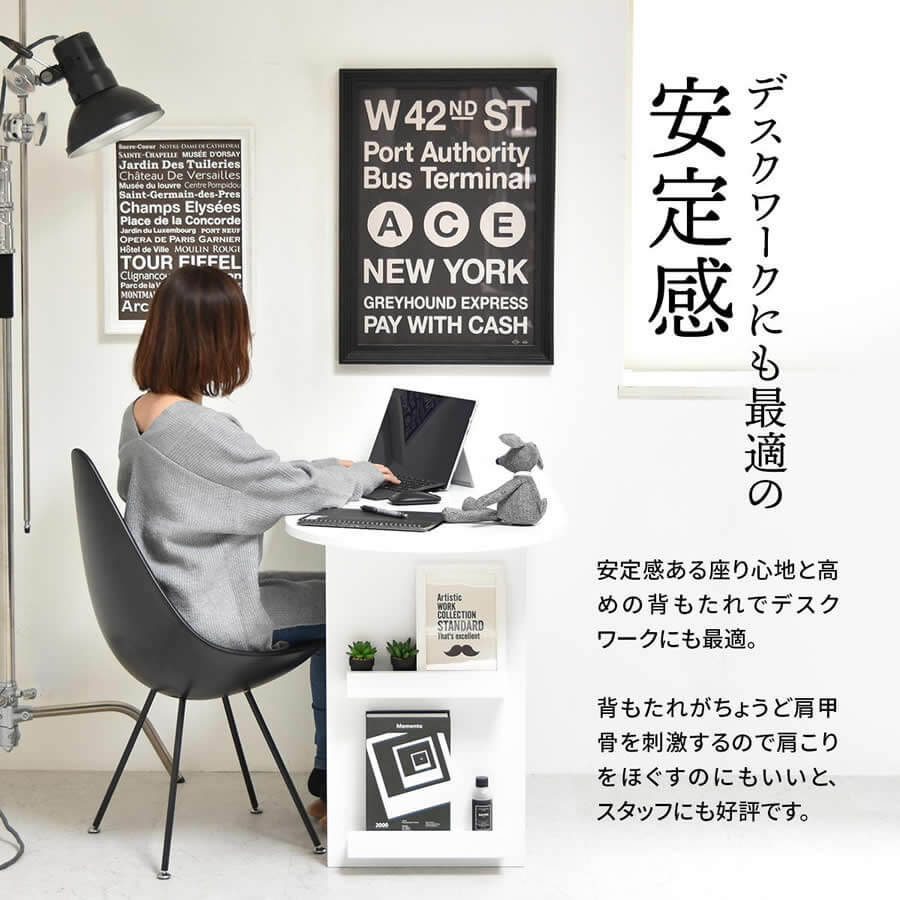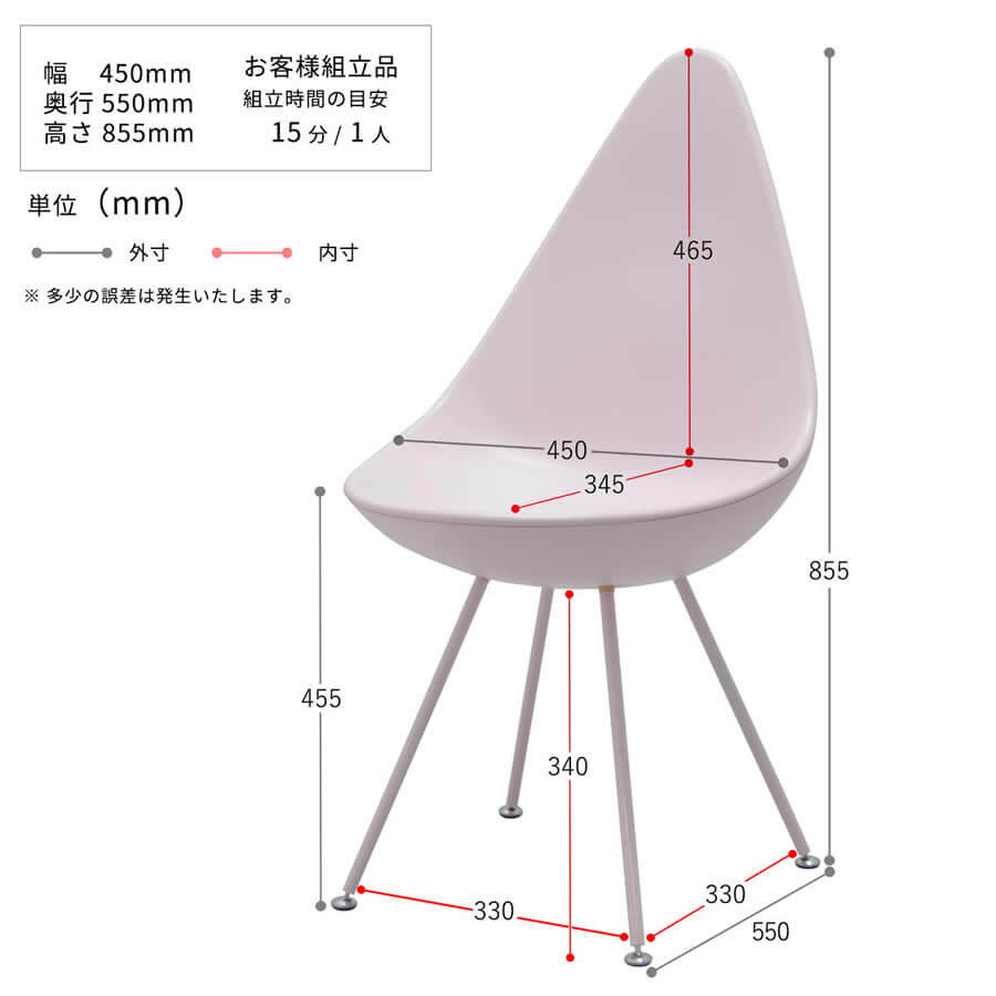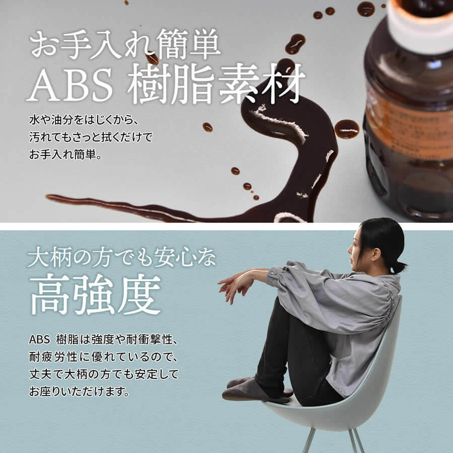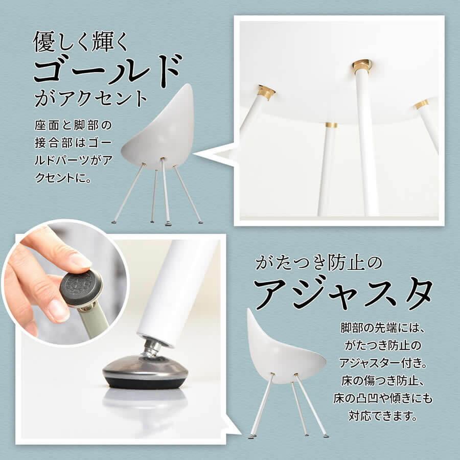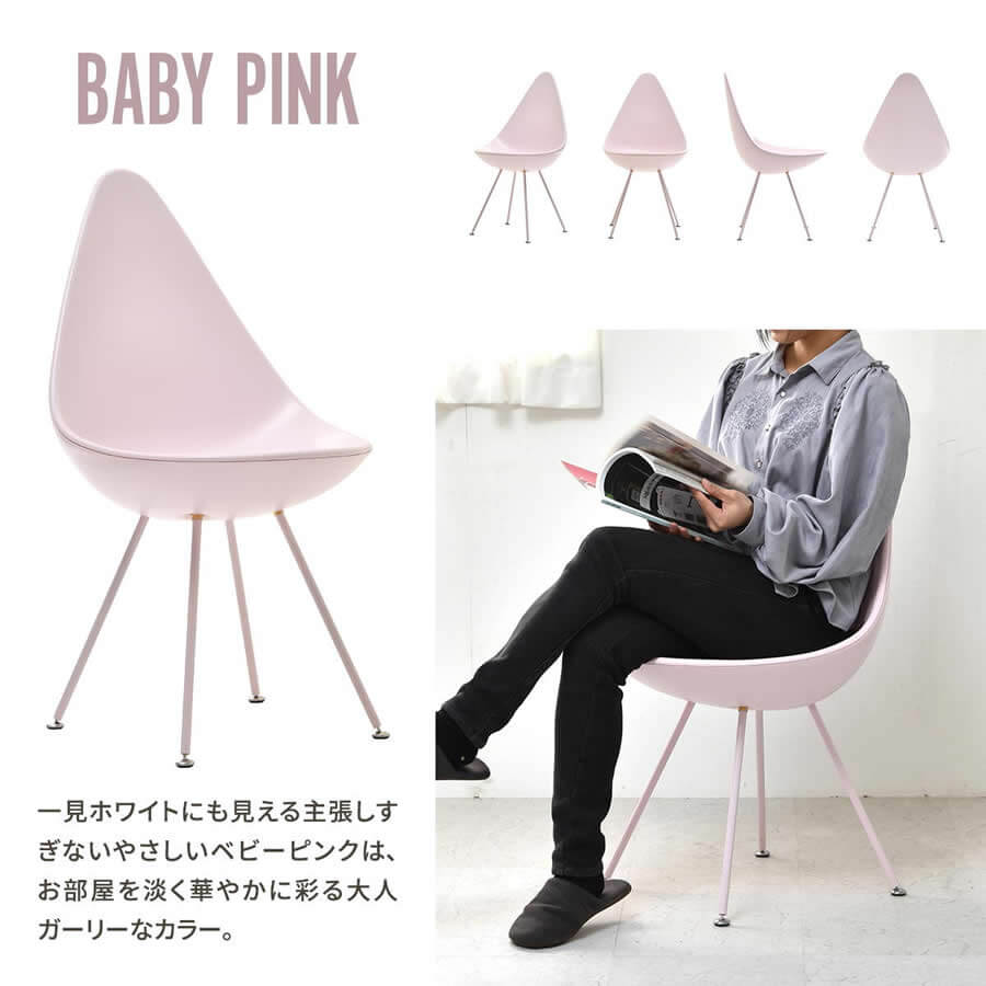 座面と背もたれは体にフィットするように設計された滑らかなドロップ型の曲線で、ハの字の脚部で安定性も良くデザイン性にも優れたチェアです。
