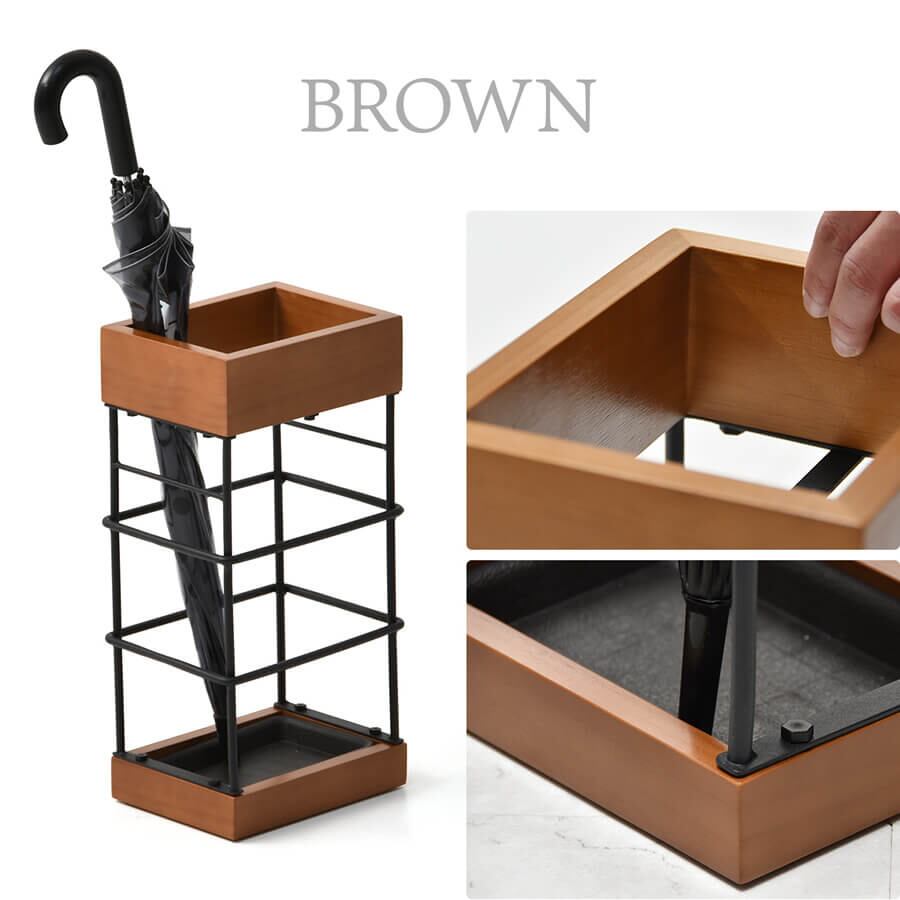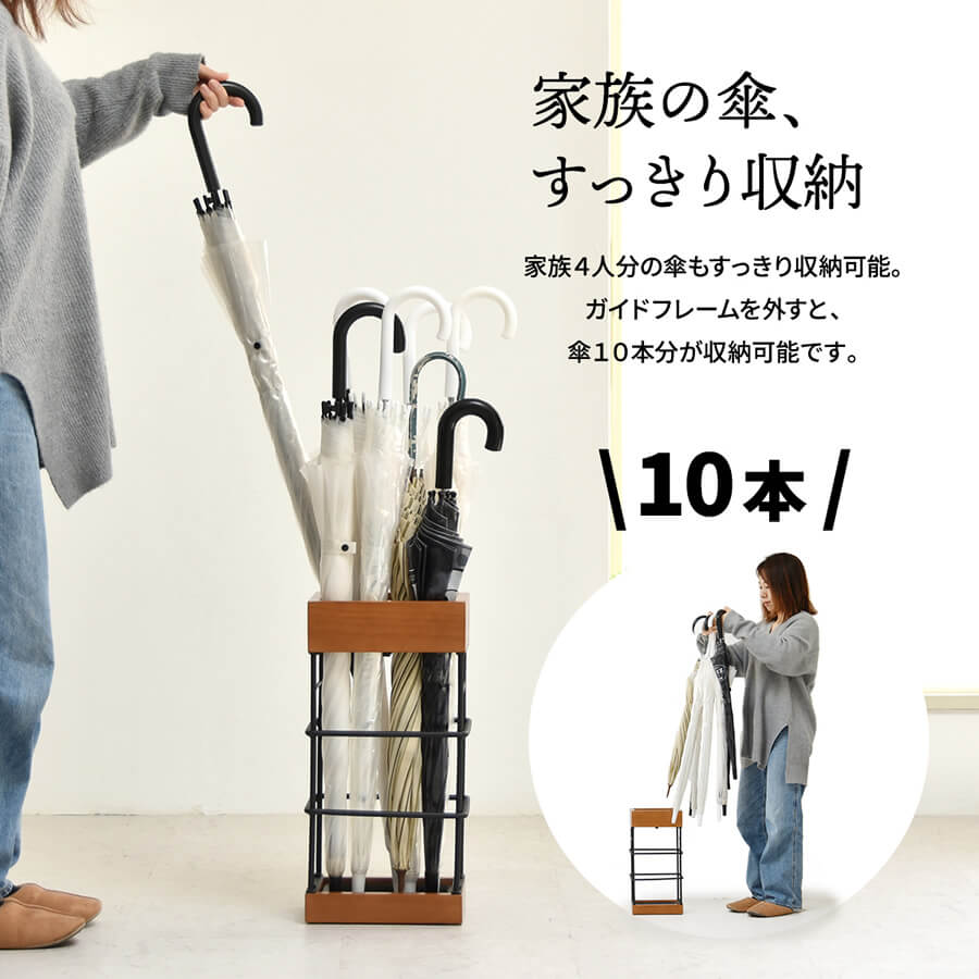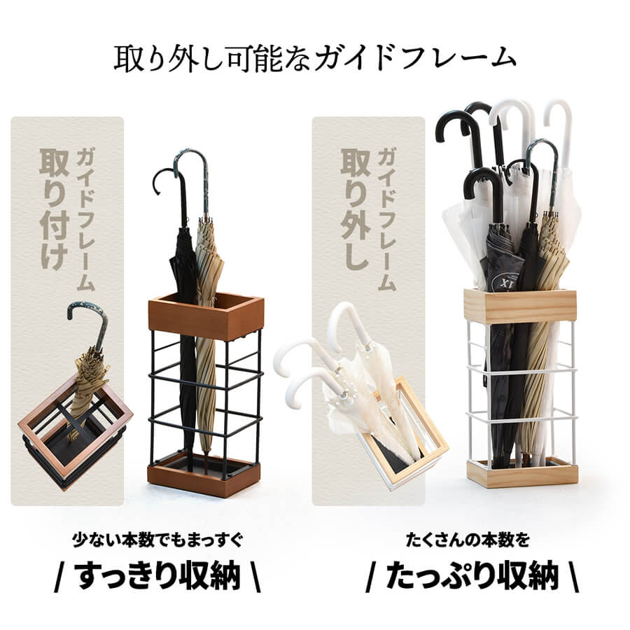 傘立て アンブレラスタンド 傘収納ラック 玄関収納 ナチュラル ブラウン 水受けトレー付き コンパクト 省スペース おすすめ おしゃれ 北欧 モダン スタイリッシュ ガイドフレーム 傘置き 傘スタンド 雨傘スタンド