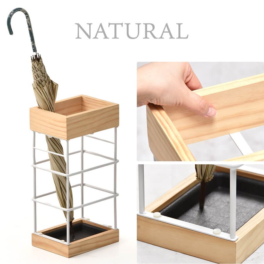 天然木とスチールの組み合わせがおしゃれな傘立てです。
