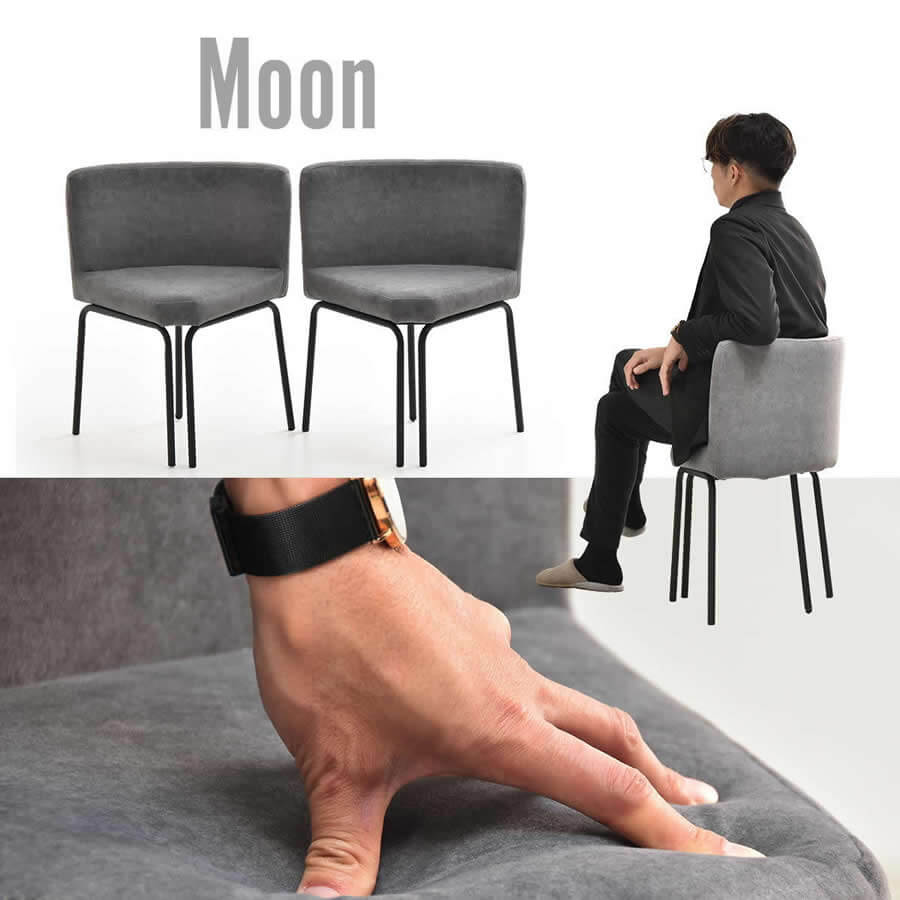ダイニングテーブルに沿うように背もたれが丸くデザインされており、おさまりが良く、省スペースでの使用が可能です。