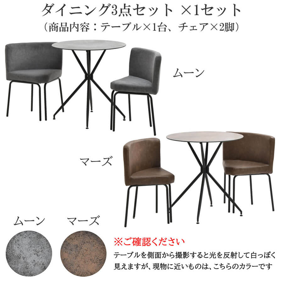 ダイニングテーブルセット ダイニングテーブル1台 ダイニングチェア2脚 合計3点セット ムーン マーズ ダイニングテーブルチェアセット テーブル70cm幅 円形テーブル 丸型テーブル 食卓用机 ダイニングチェア 食卓用椅子 チェアー スチール脚 ダイニングセット テーブル 椅子