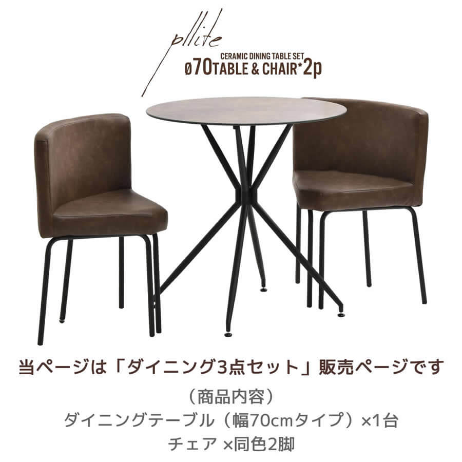 (※セット内容:ダイニングテーブル(幅70cmタイプ)×1台、ダイニングチェア×同色2脚)
