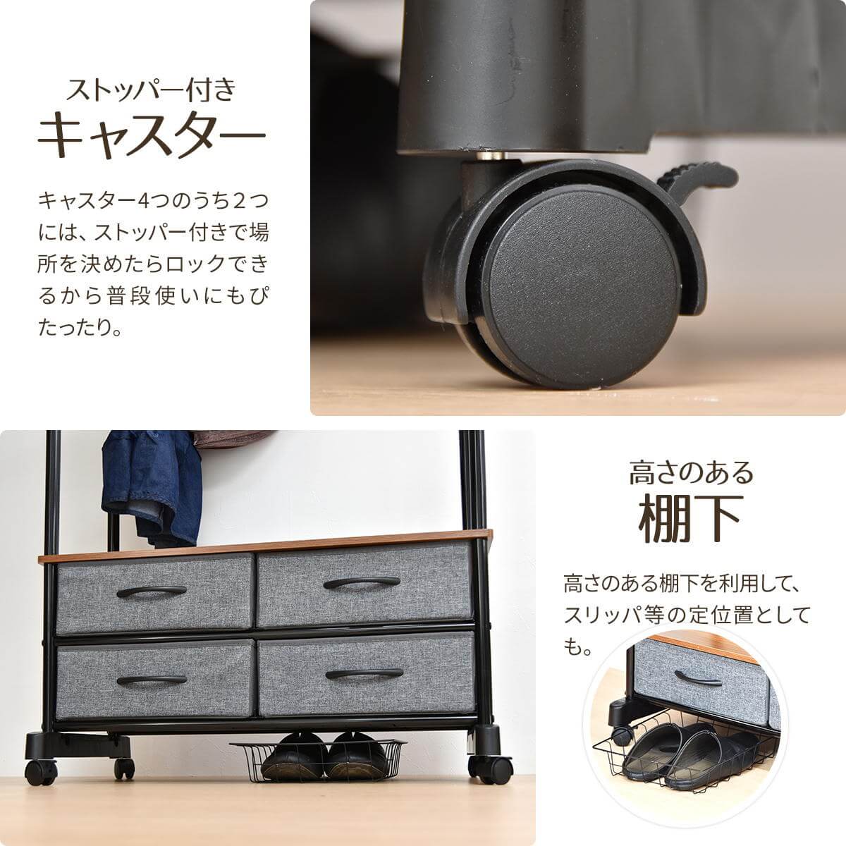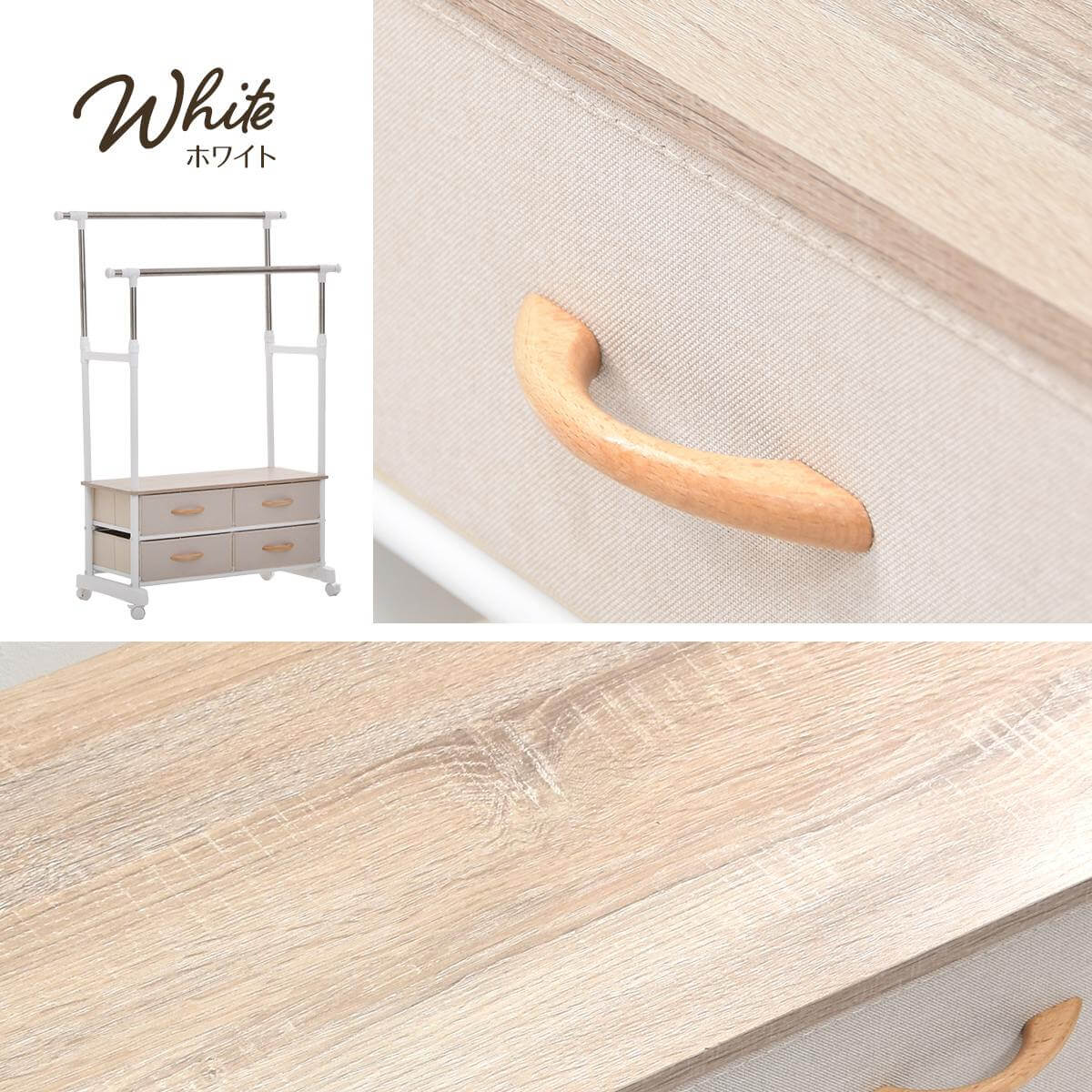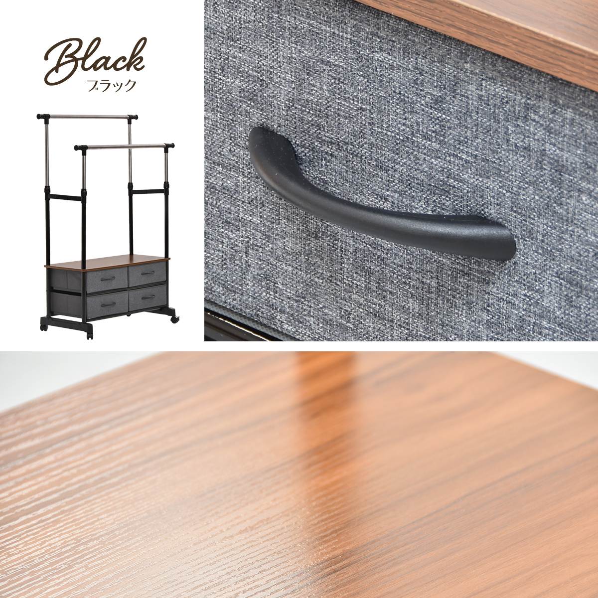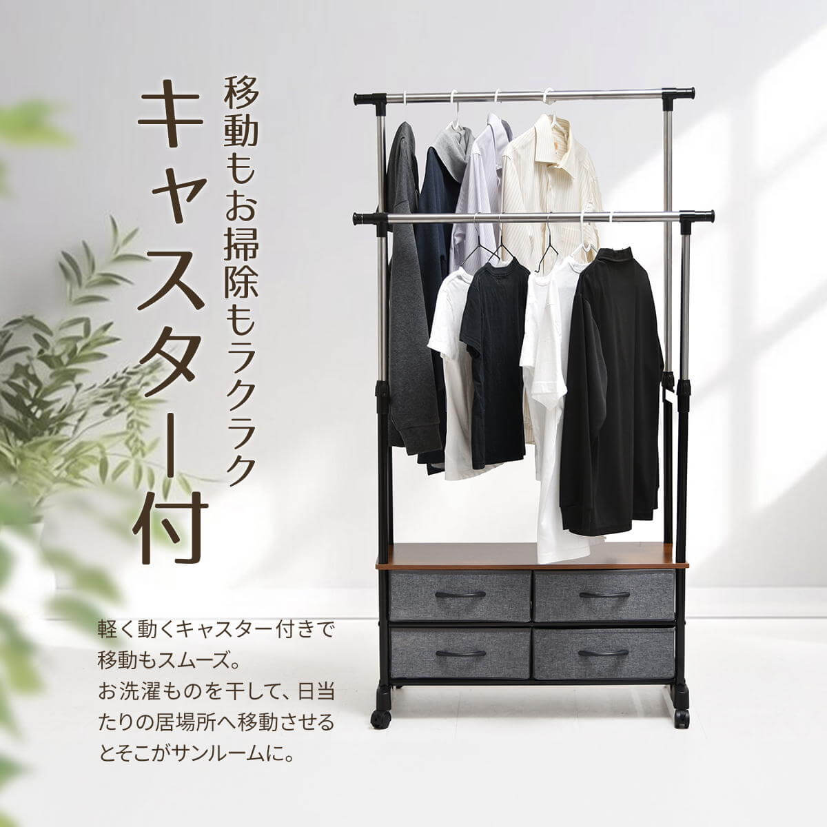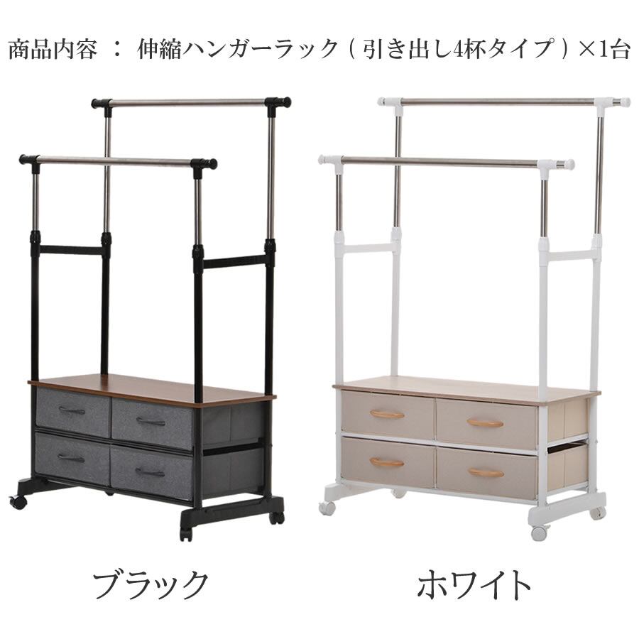 ハンガーラック 伸縮式ハンガーラック ダブルハンガーラック 収納付きハンガーラック 88cm幅 最大150cm幅 ブラック ホワイト 黒 白 収納チェスト付き おすすめ おしゃれ 北欧 モダン スタイリッシュ ランドリーラック キャスター付きラック キャスター付きハンガーラック 引き出し4杯タイプ