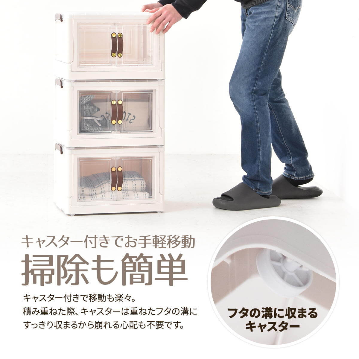 底部分にはキャスターがついており、移動が楽なのでお掃除する時にも便利な収納ボックスです。