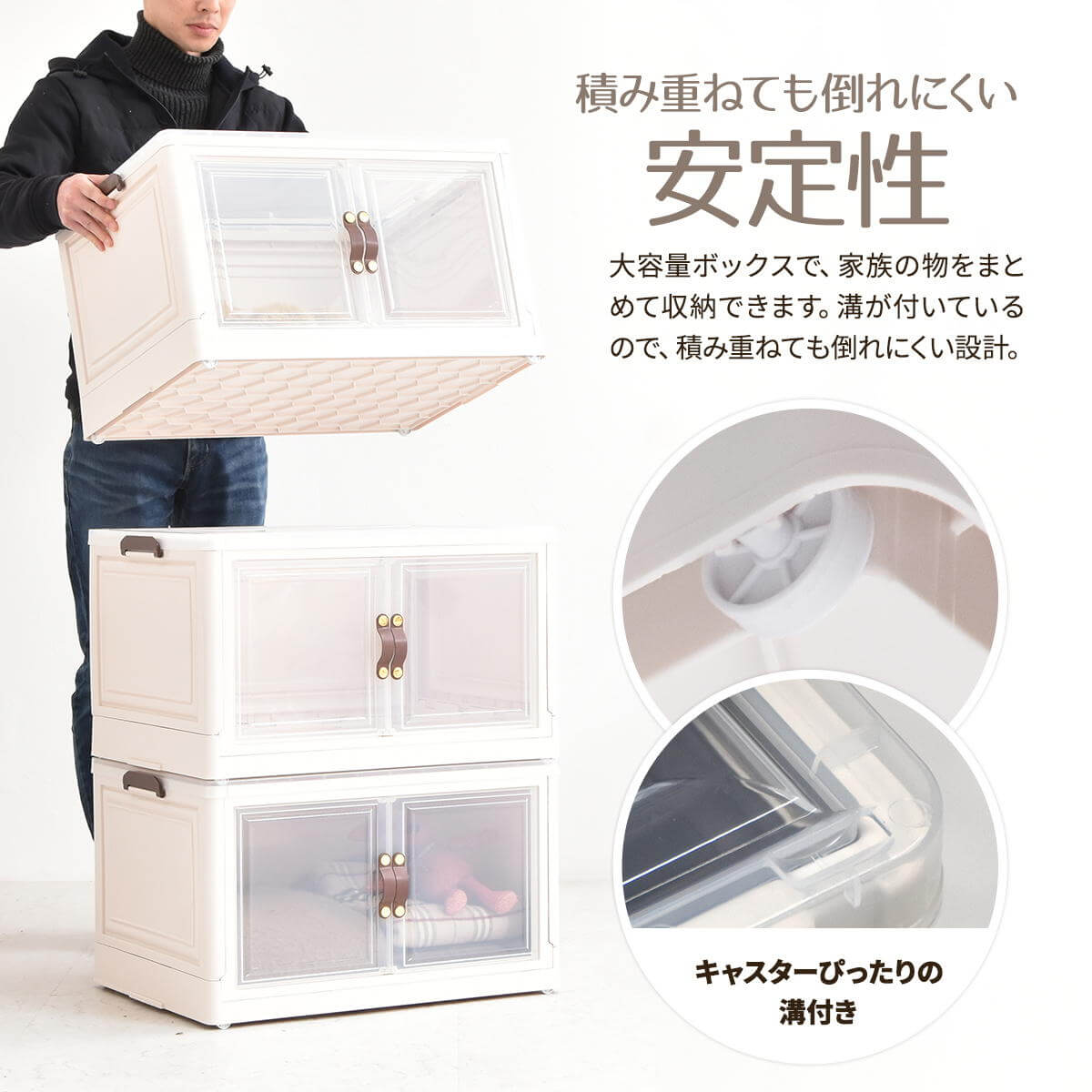 積み重ねができるスタッキング仕様になっているので、お部屋のスペースやご利用になりたい容量などに合わせて積み重ねてお使いいただけます。