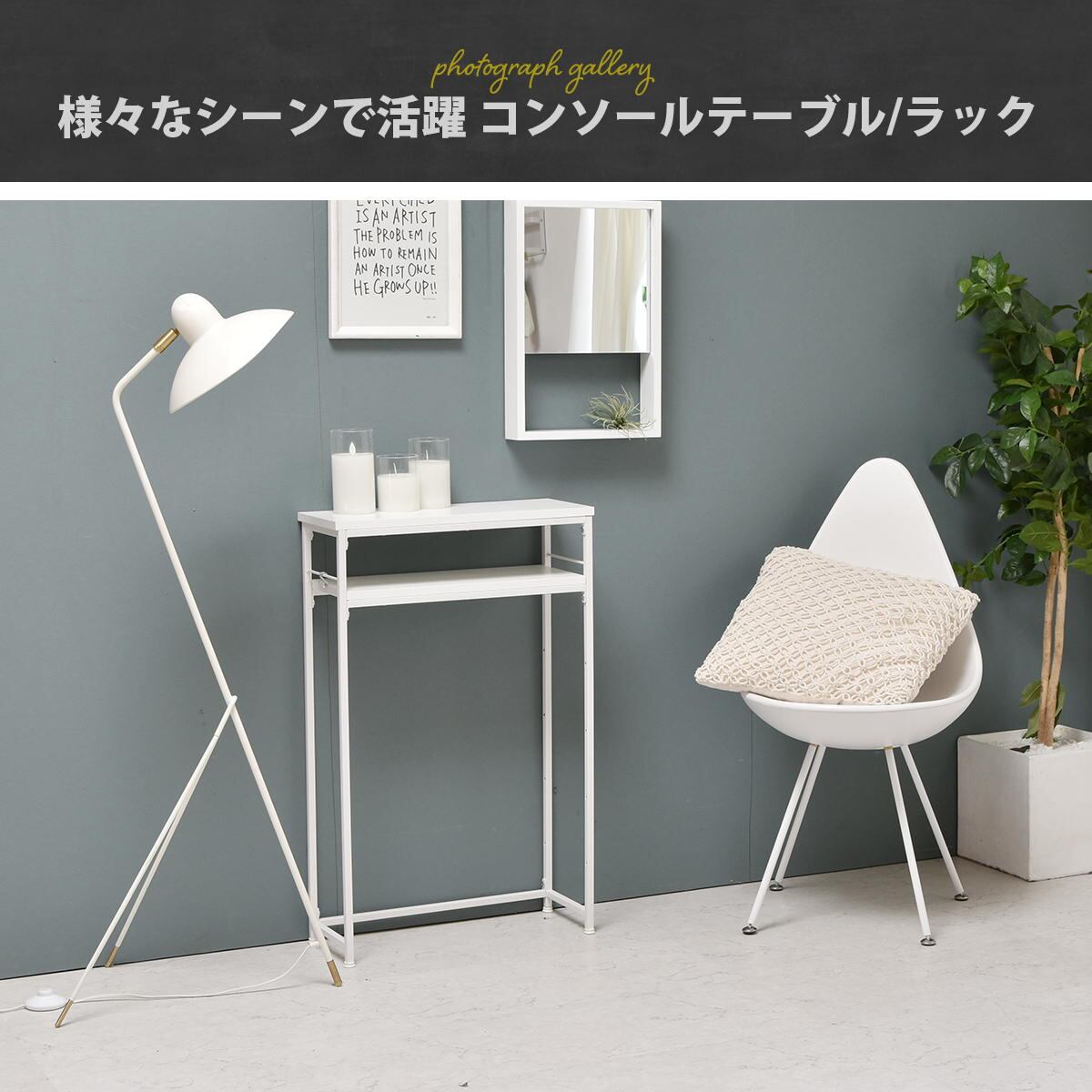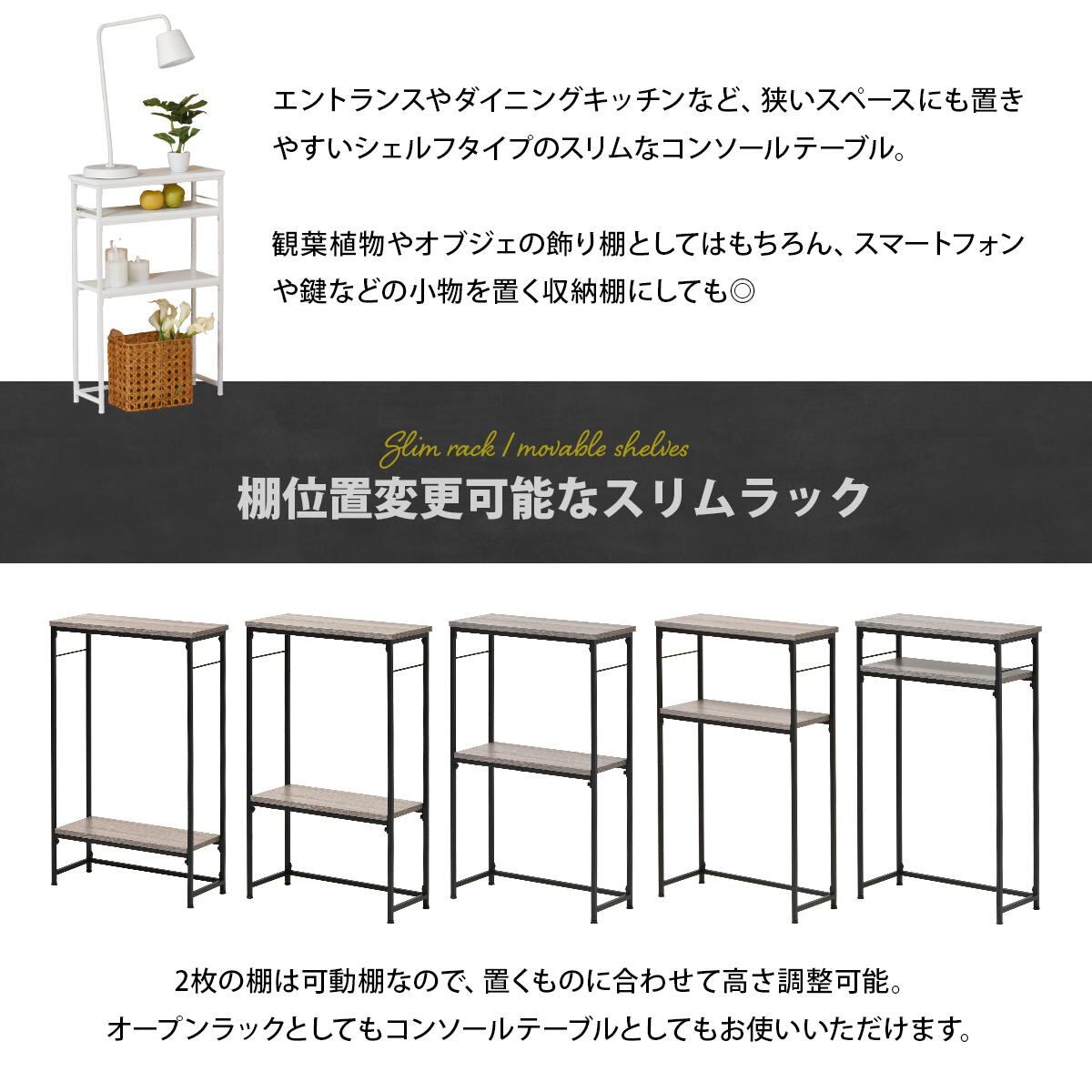 玄関や廊下など広さが限られたスペースも設置可能なスリムなラックタイプの50cm幅のコンソールテーブルです。