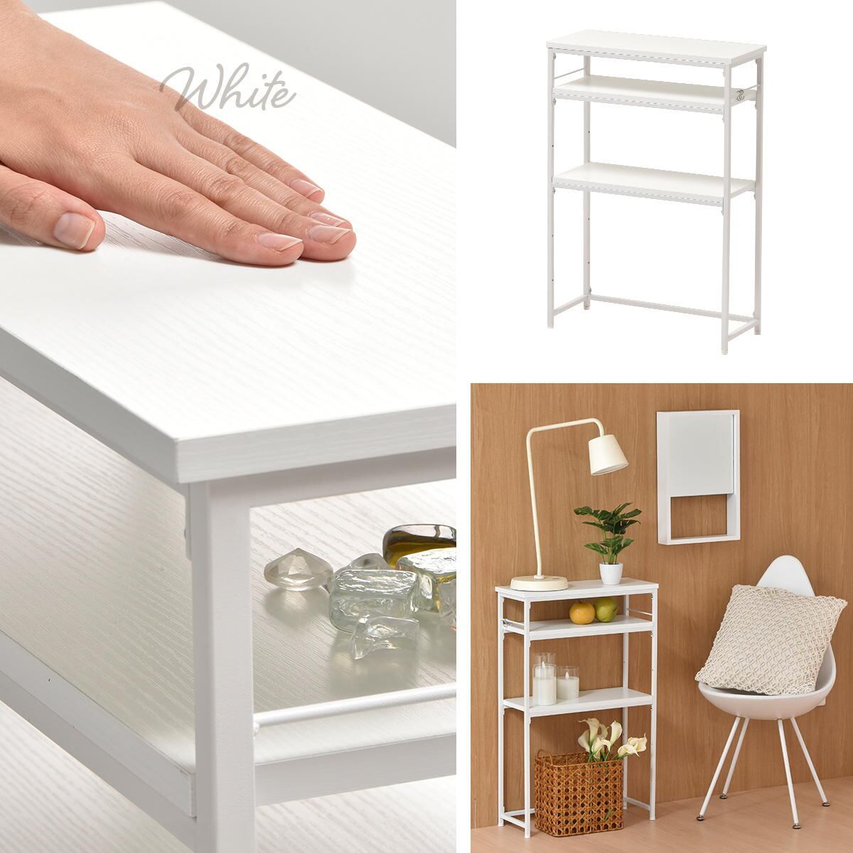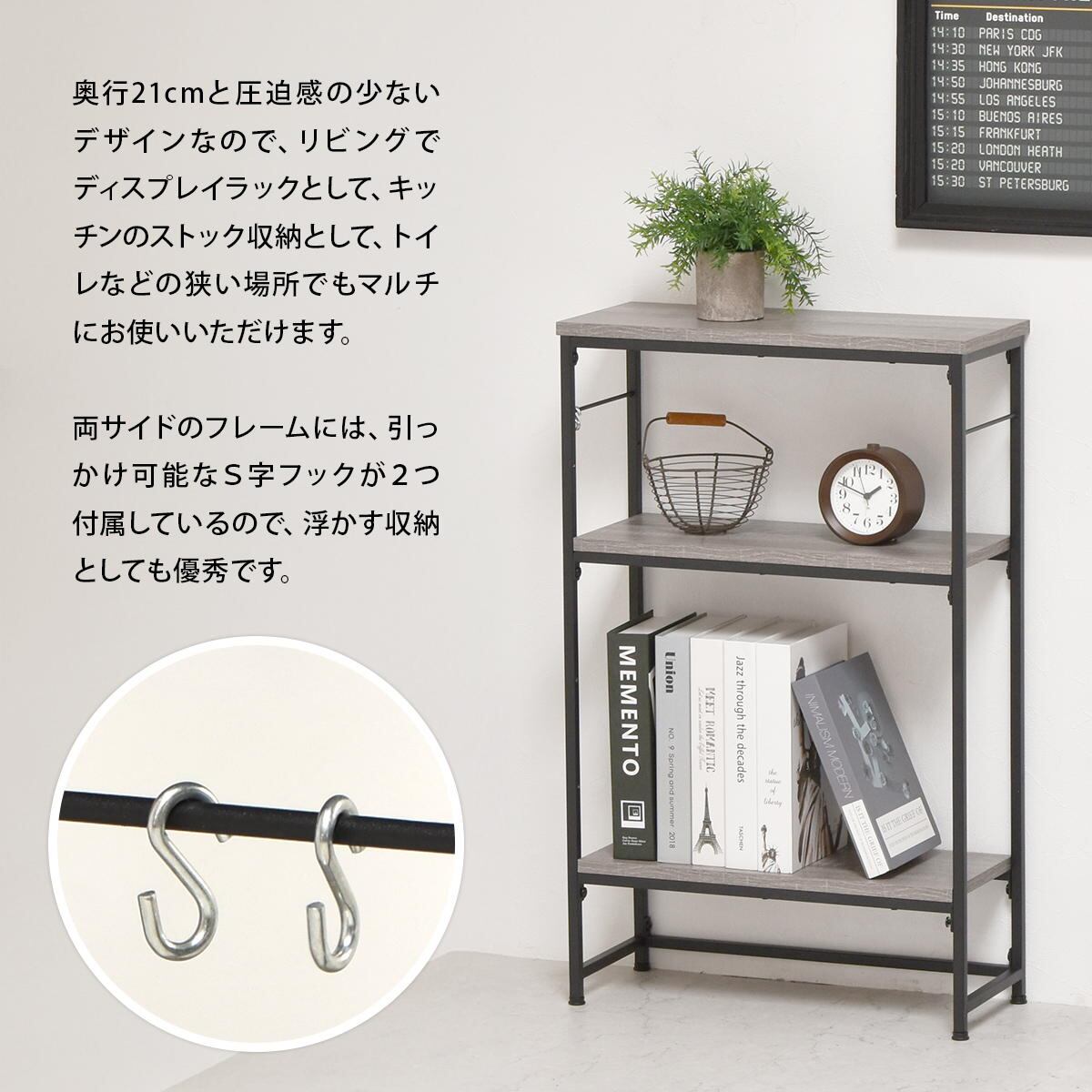コンソールテーブル 50cm幅 グレー ホワイト おすすめ おしゃれ 北欧 モダン スタイリッシュ ナチュラル シンプル ベーシック 収納ラック 可動棚 収納棚 キッチン収納 リビング収納 サニタリー収納 スリム コンパクト 省スペース S字フック付き ラック 棚 収納 オープンラック オープン収納ラック