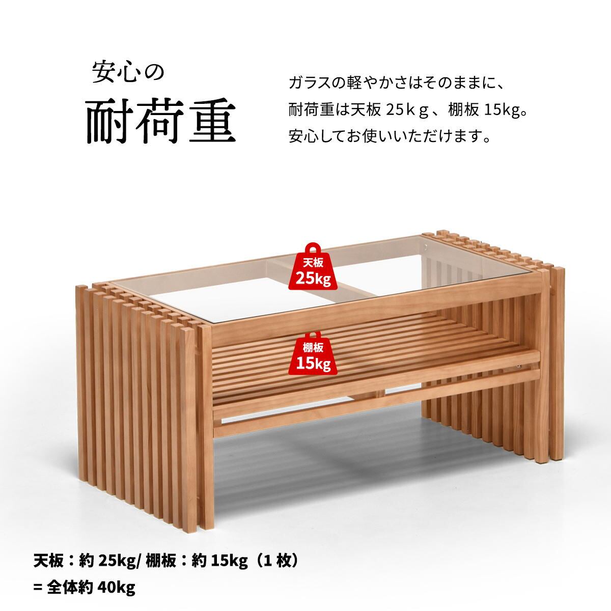 ■耐荷重(約):天板25kg、棚板15kg